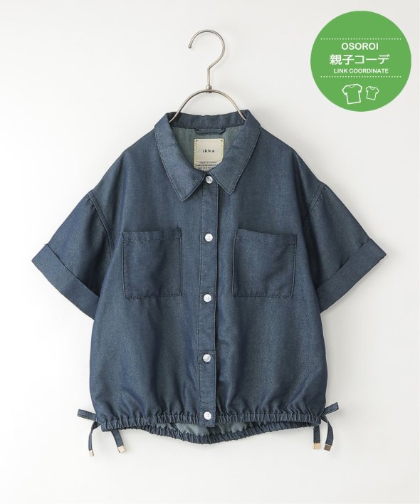 【先行予約】【親子コーデ】 裾シャーリングシャツ (110cm~160cm)
