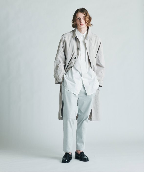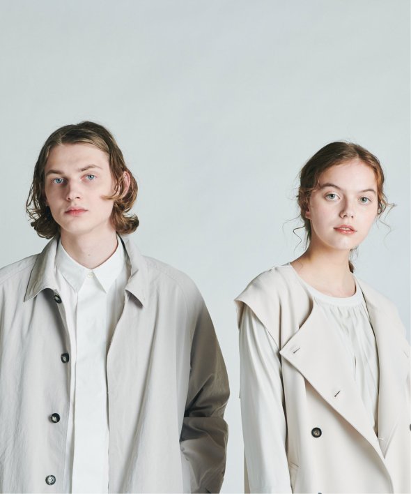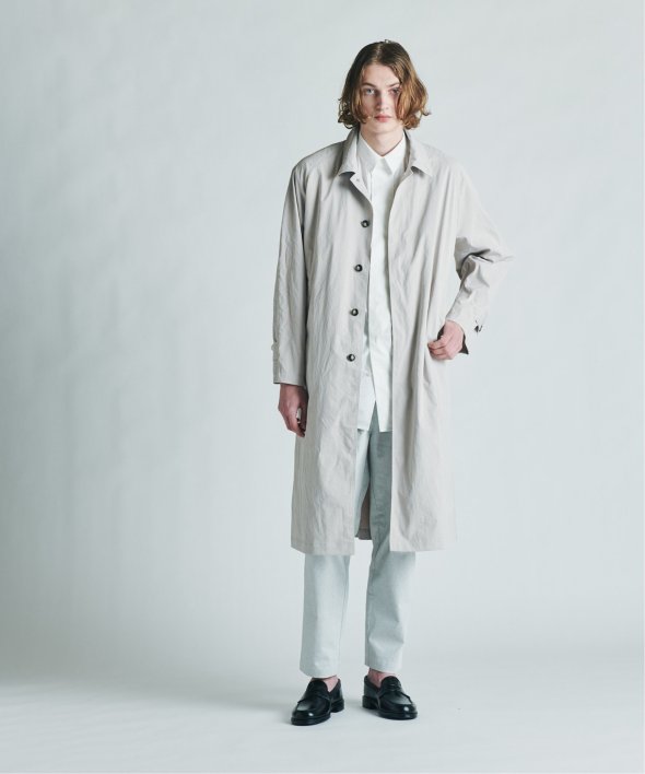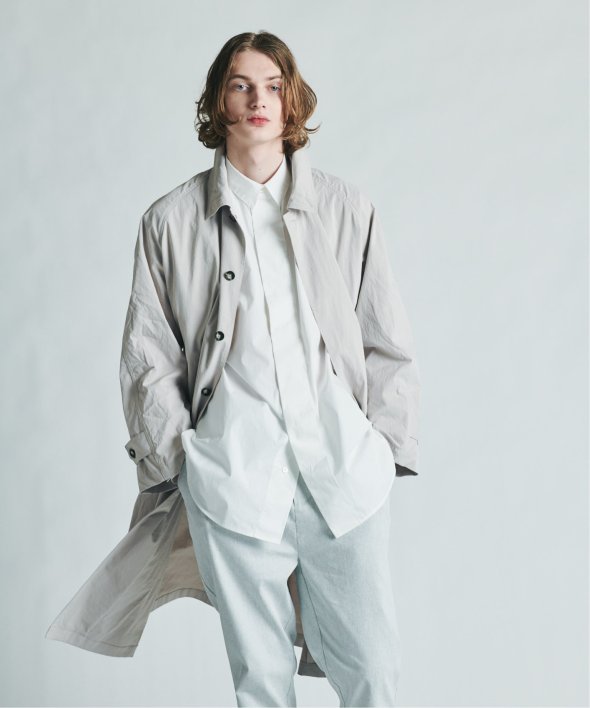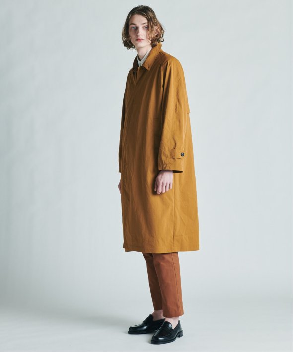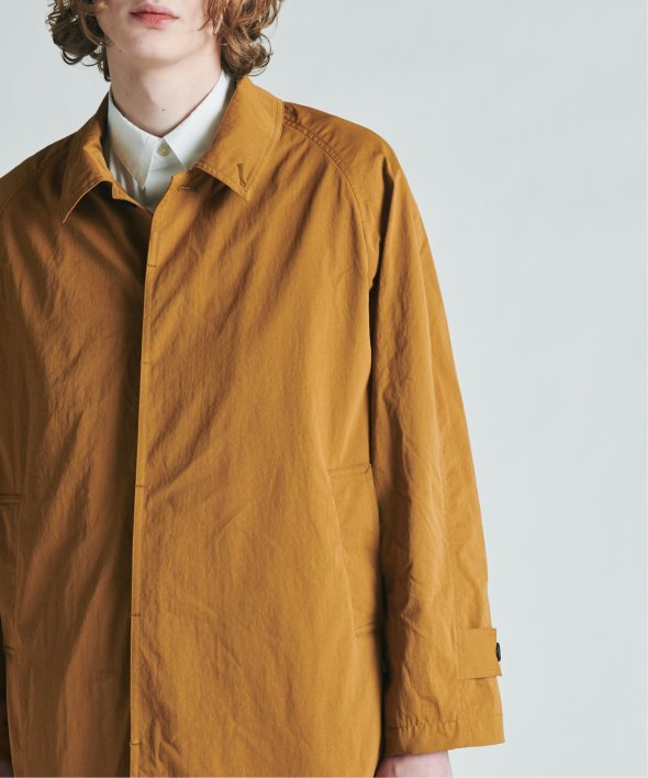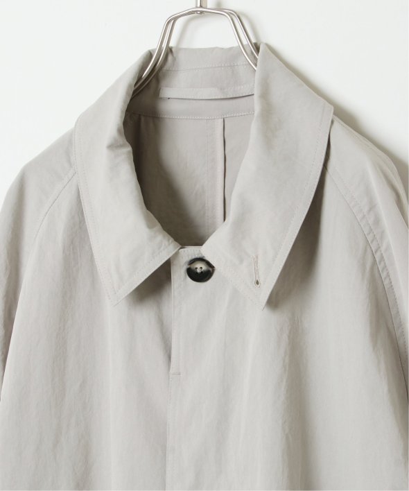 バルマカーンコートの特徴でもあるステンカラー、ラグランスリーブ、比翼仕立てを採用。