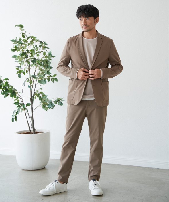 軽くて快適な着心地を叶える「GOKU楽ワーク」シリーズ。ビジネスシーンで活躍するジャケットです。【素材】伸縮性と張り感を兼ね備えたジャージー素材を使用しました。【デザイン】シンプルな2Bデザイン。微配色のパイピング、腰のパッチポケット仕様などオン・オフ兼用使い◎【ikkaポイント】快適な通勤アイテム「GOKU楽ワーク」シリーズ。豊かな伸縮性がストレスフリーな着心地に繋がり、着用すると癖になるアイテム。シワにもなりにくく、幅広いシーンで大活躍。今季はブラックが新色で登場!