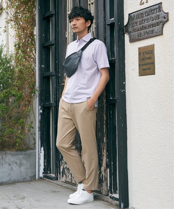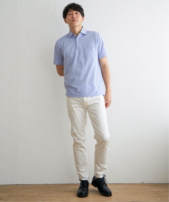 「ikka」オリジナルの機能素材を使用したカッタウェイポロシャツ。