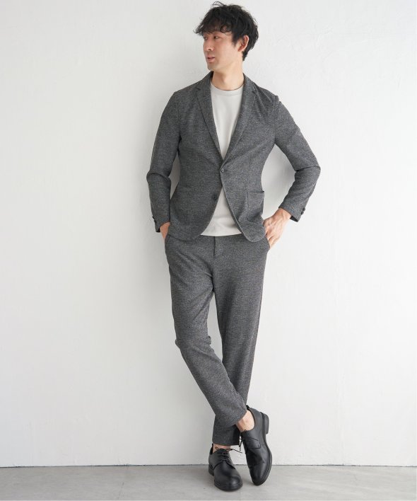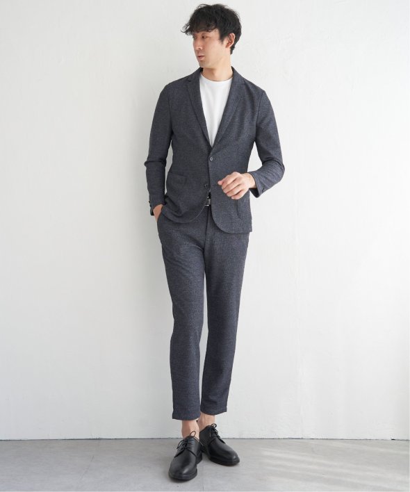 ikka定番の「GOKU楽ワーク」シリーズのパンツ。通勤スタイルや、在宅ワーク・テレワークシーンにもおすすめです。4WAYストレッチと紐で調節できるウエストで快適な履き心地を叶えます。また、お手入れも簡単なため気兼ねなくデイリーに活躍します。セットアップ対応アイテムもご用意しております。■【セットアップ対応/イージーケア】GOKU楽ワーク メランジライトジャケット 品番 50110065