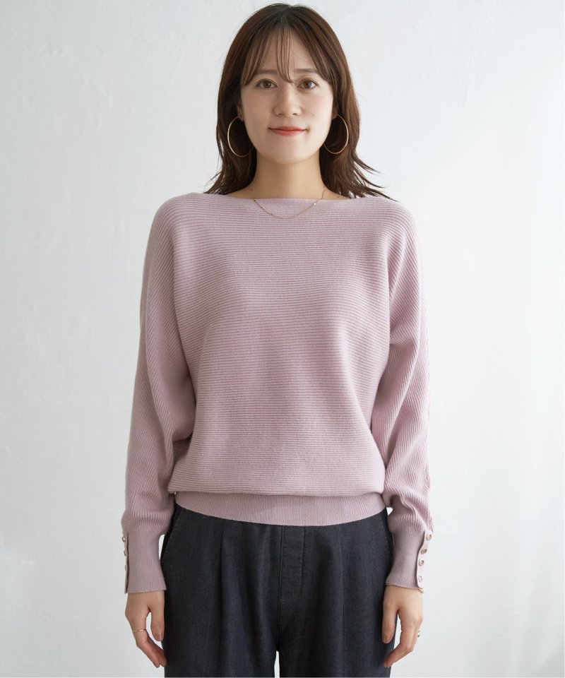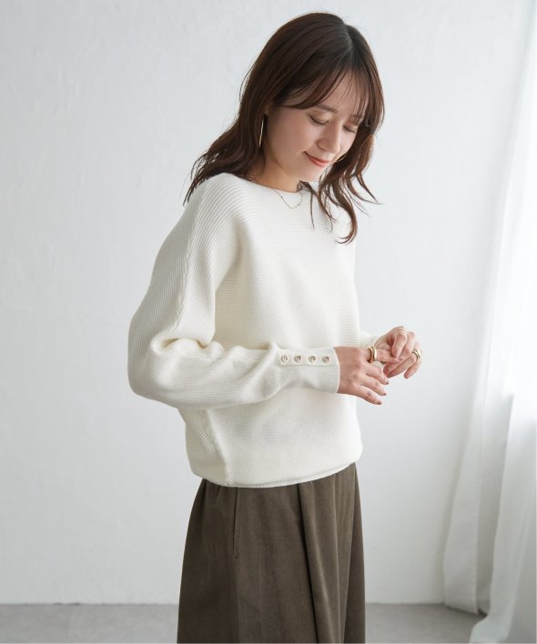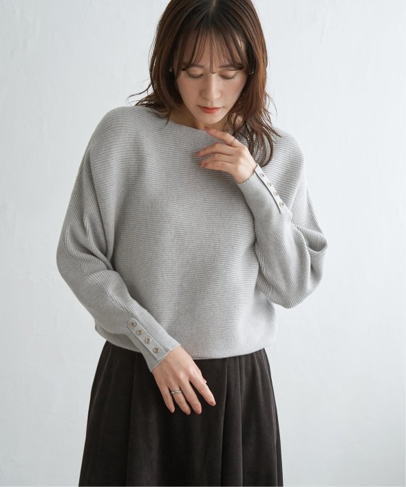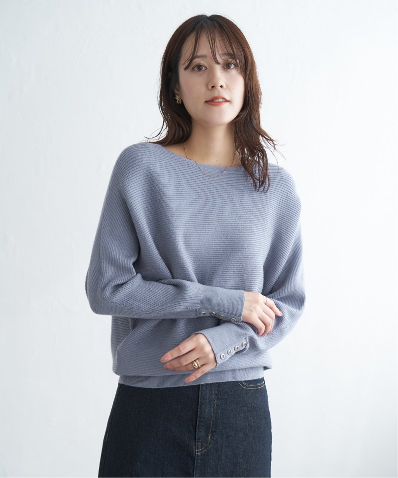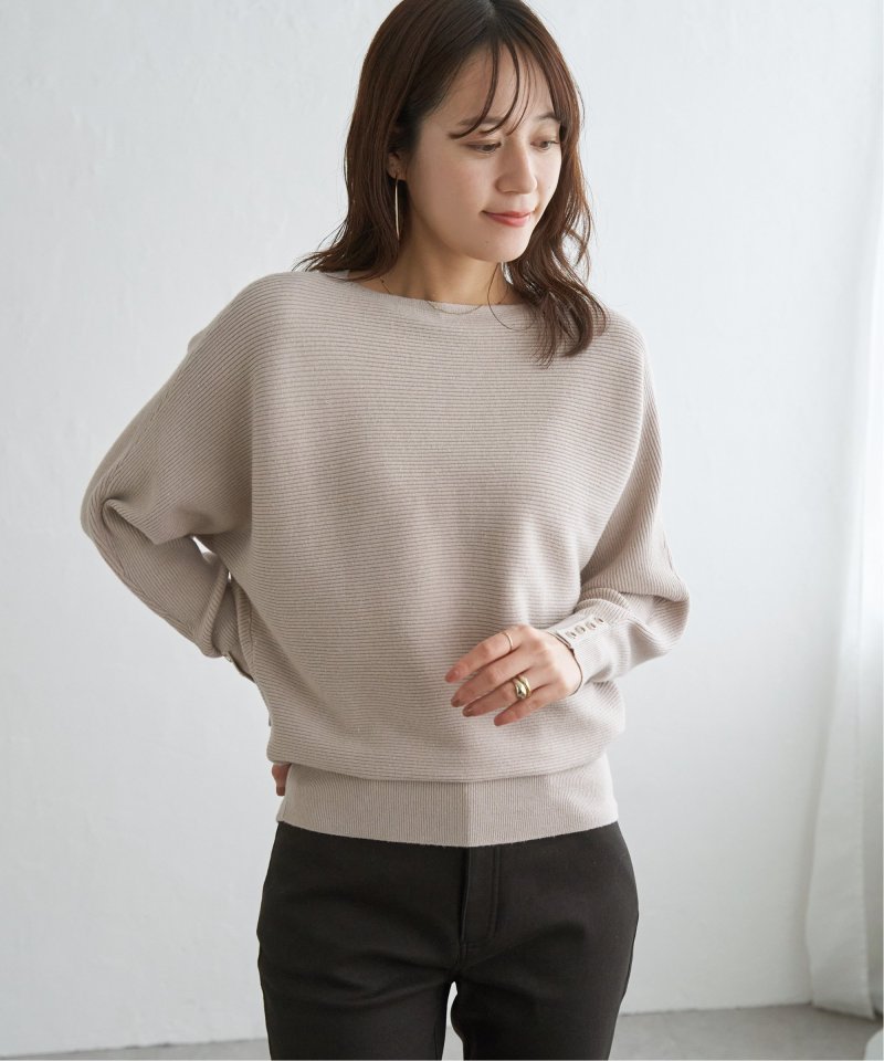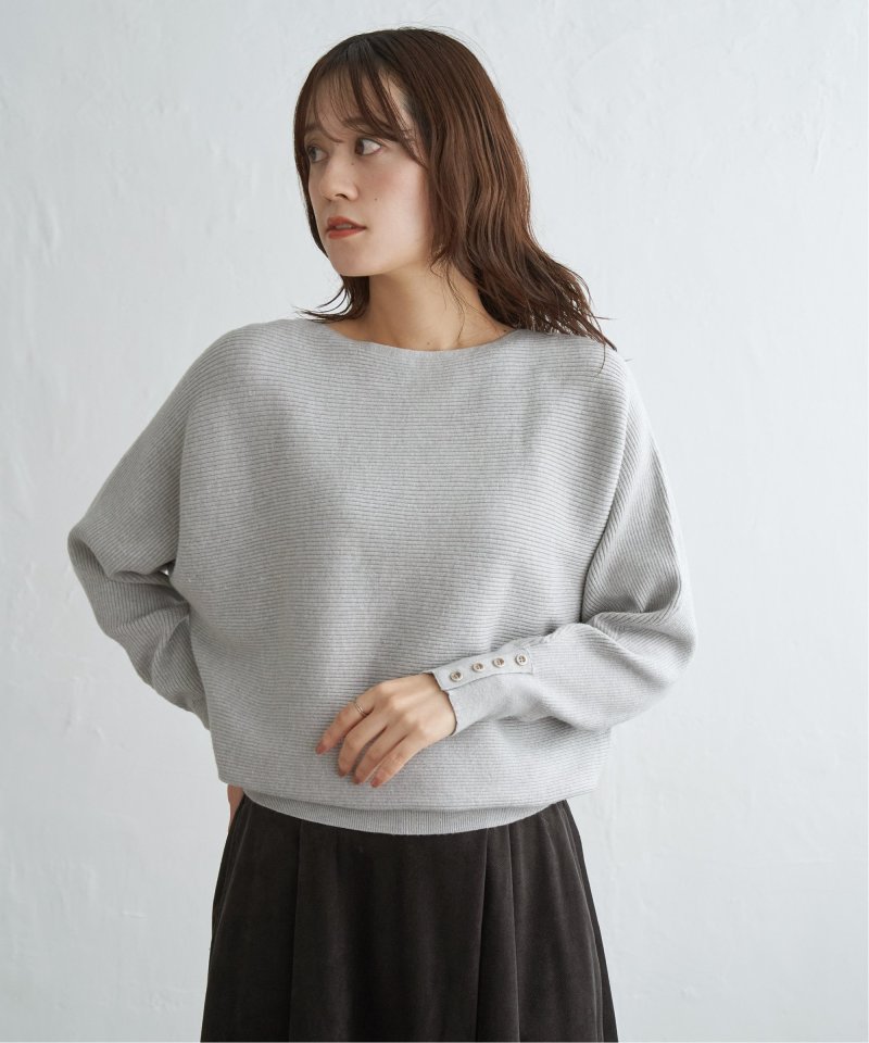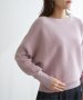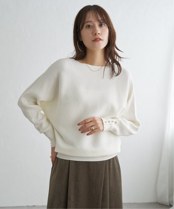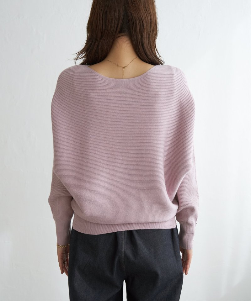 衿元がきれいに見えるボートネックで、腕周りがゆったりしたドルマン型プルオーバーです。
