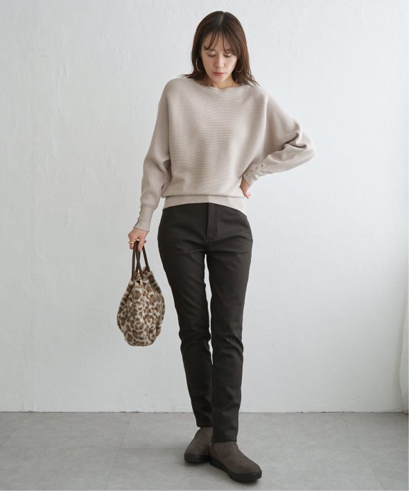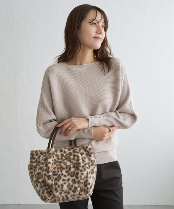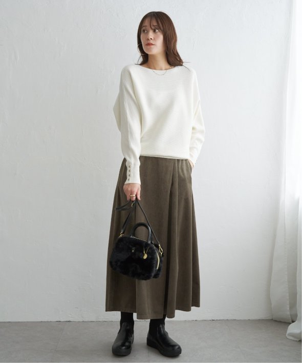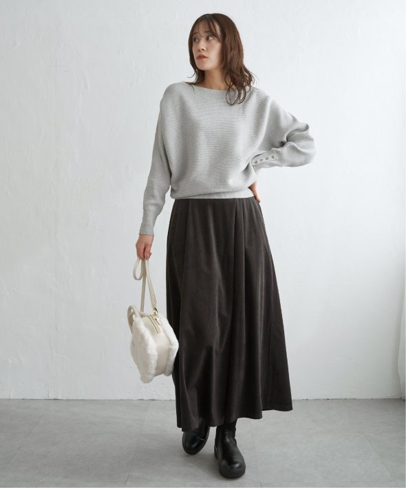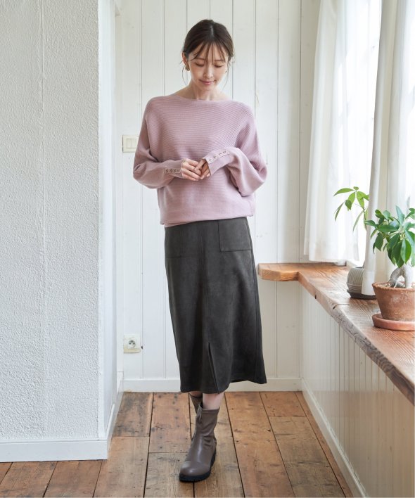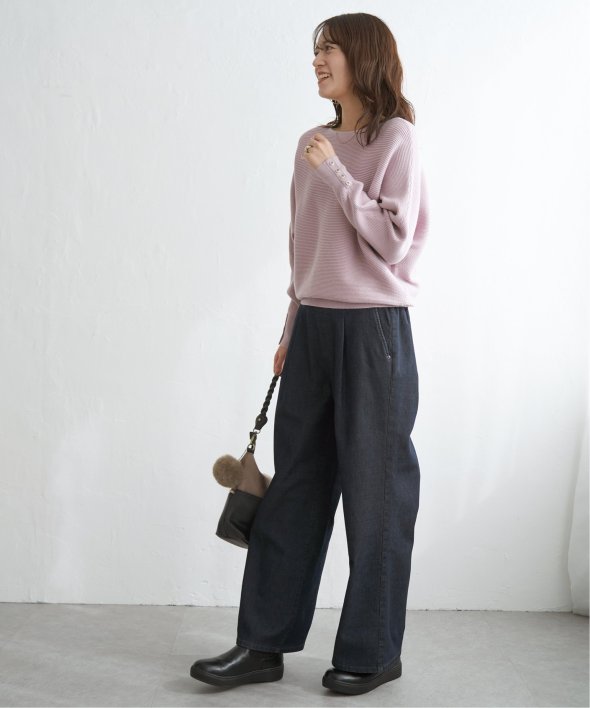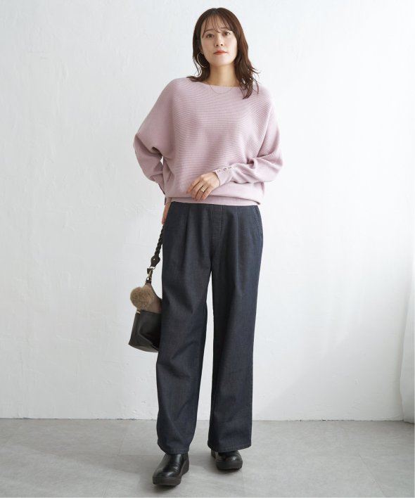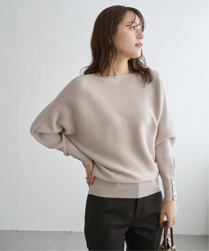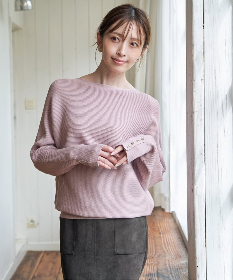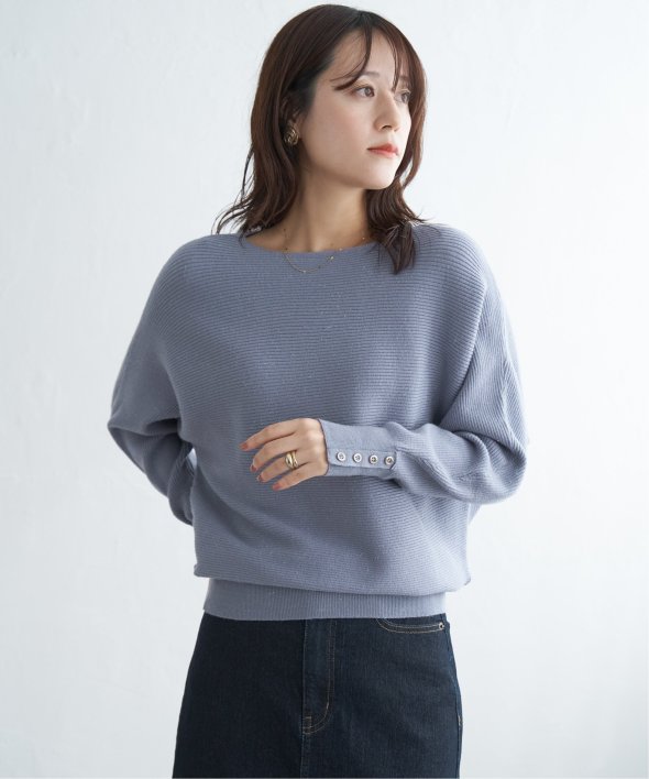 衿元がきれいに見えるボートネックで、腕周りがゆったりしたドルマン型プルオーバーです。