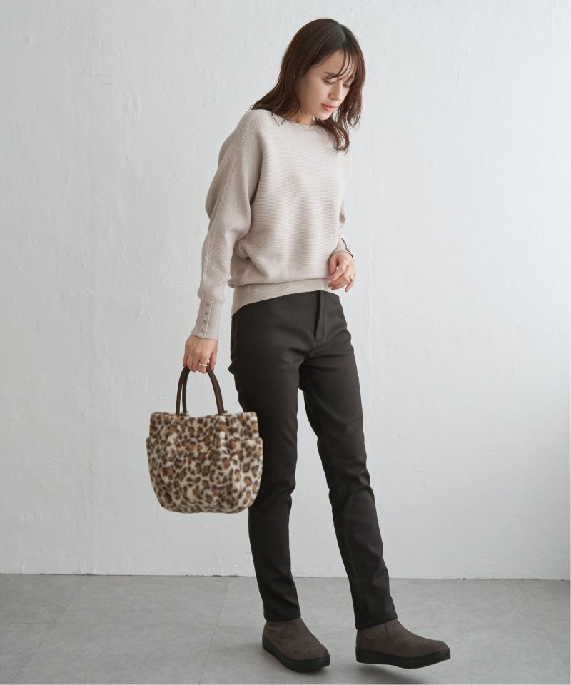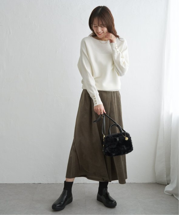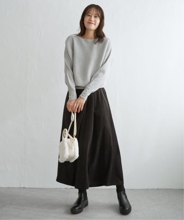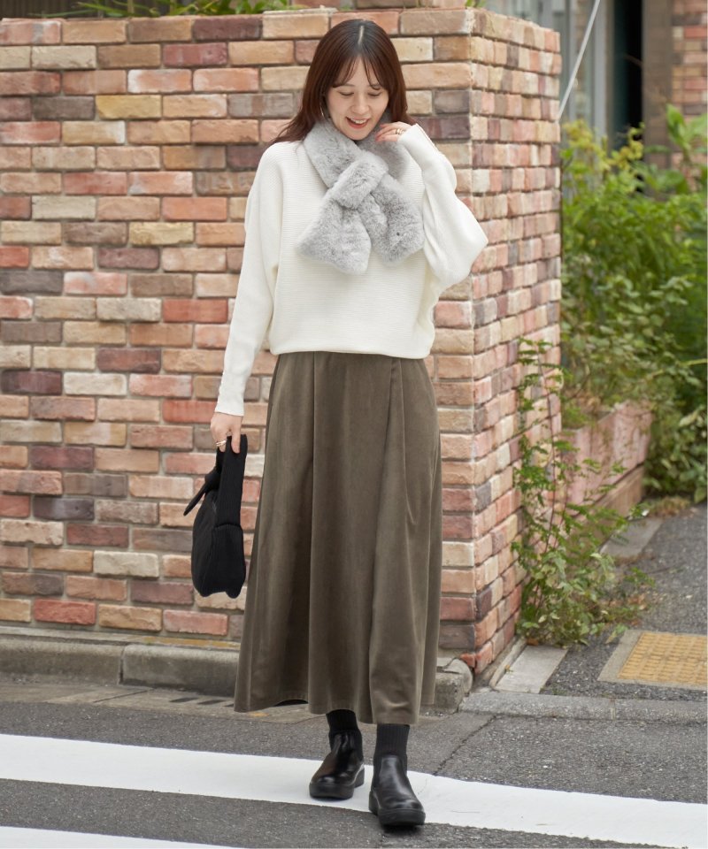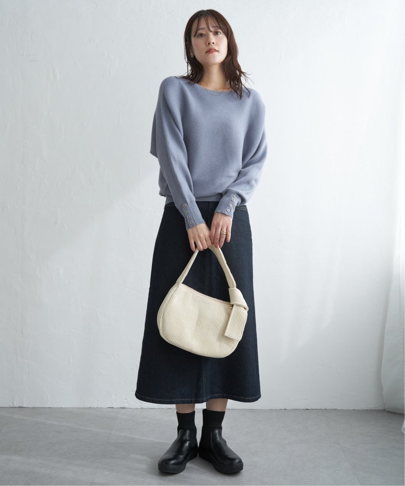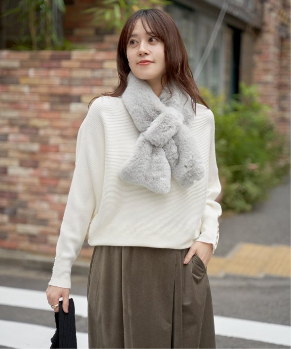 ・細目のガーター編みがキレイ目にもカジュアルにも汎用◎