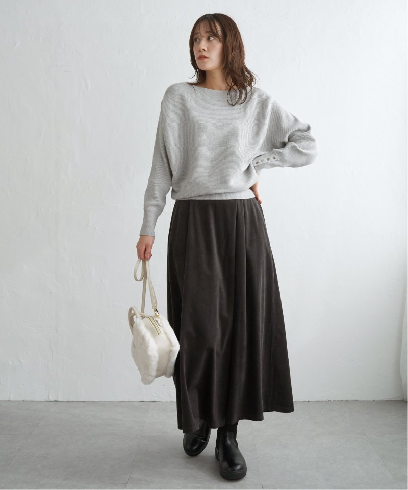 ドルマンスリーブが二の腕や体形を拾わず、ふんわりとおしゃれにカバーしてくれるのも魅力です。