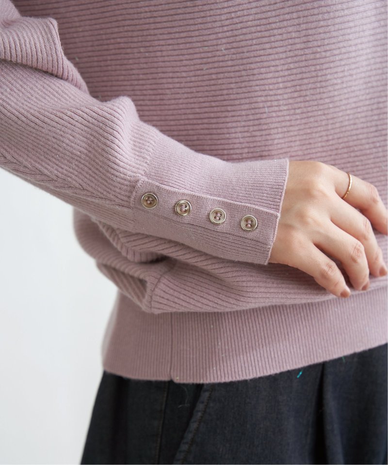 しっかりと表面感のある横リブ編地で、シンプルながら寂しくならないニットプルオーバー。