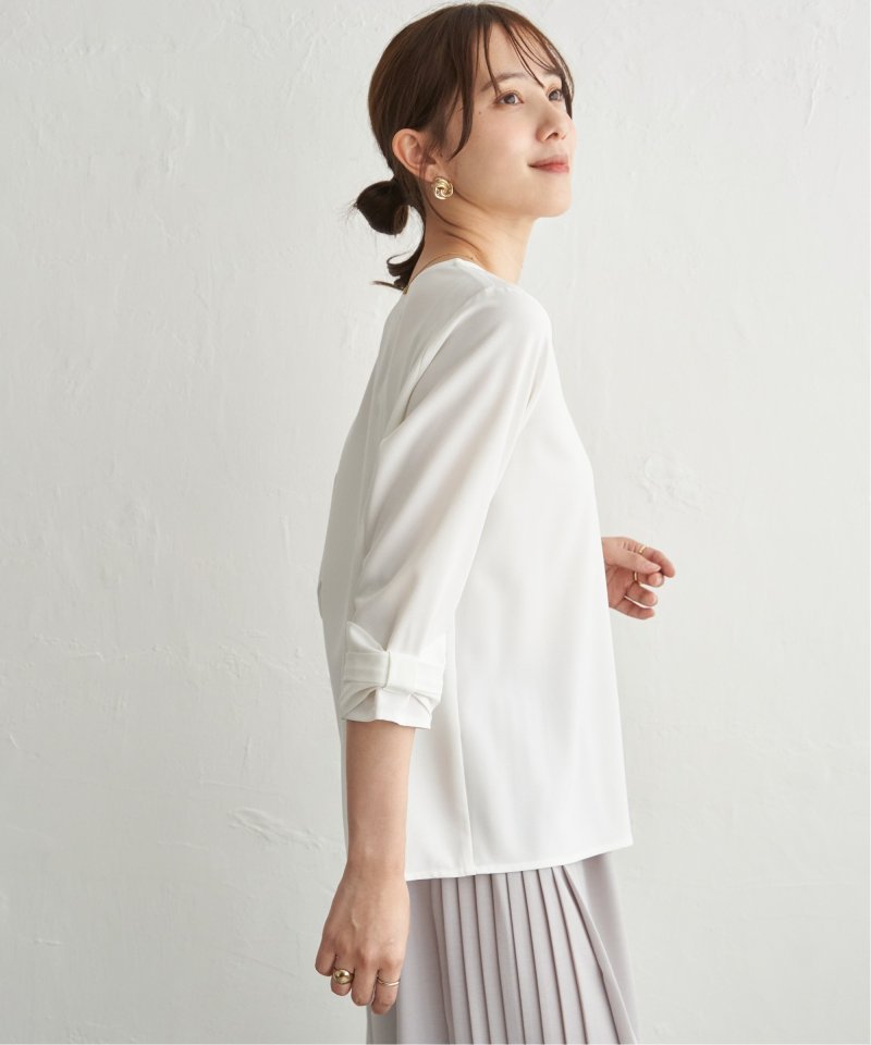 さりげない甘さを添える袖リボンブラウス