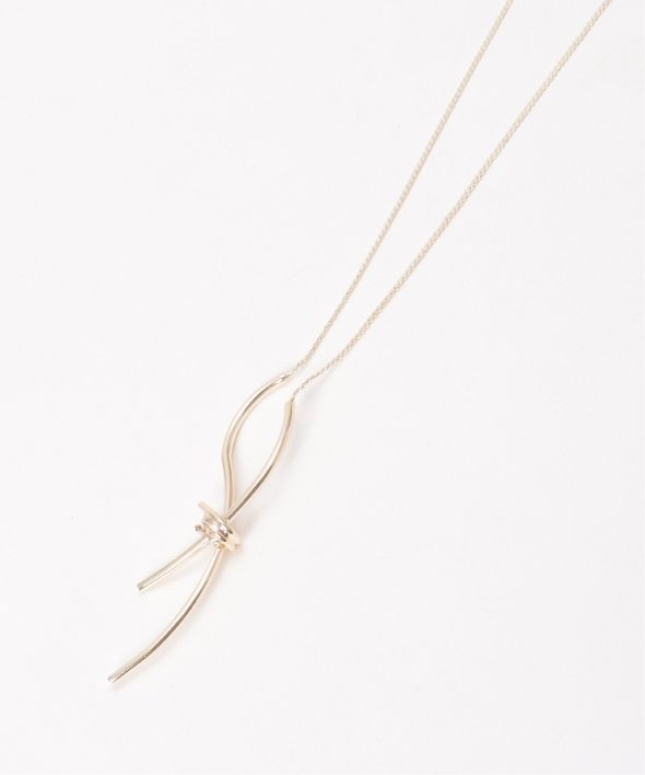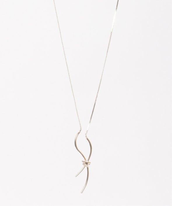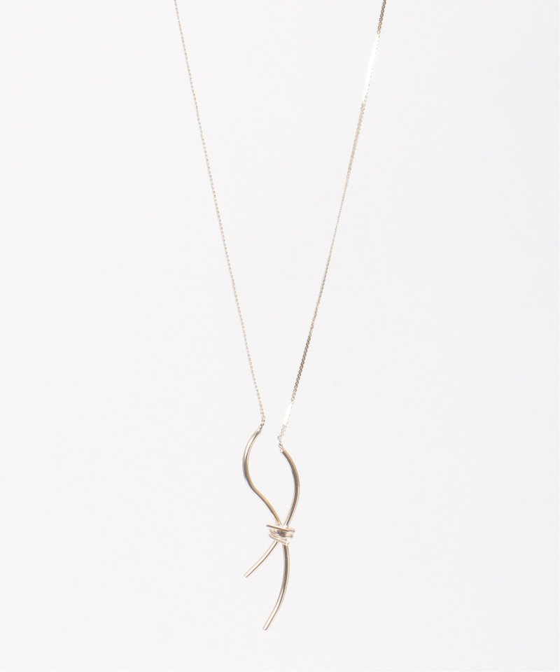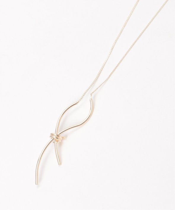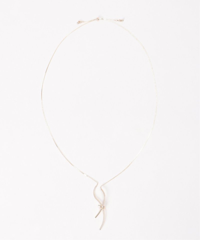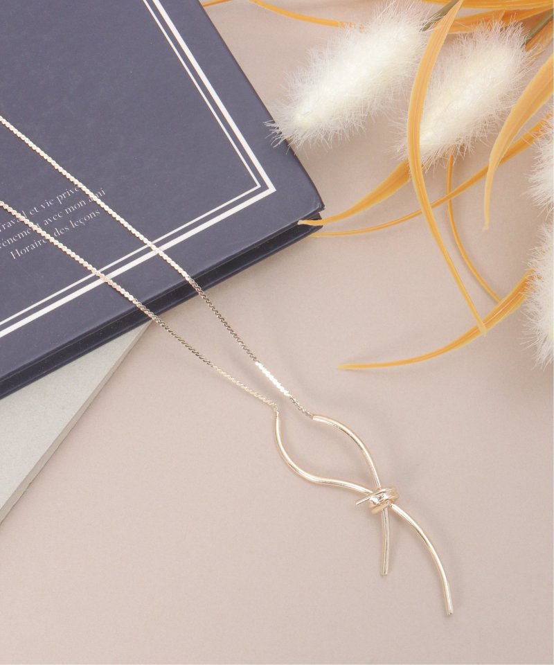 メタルをひねったようなノットモチーフが、さりげなく存在感を添えるネックレス。リボンを結んだようなフォルムが、大人のアクセントとして上品に映える一本です。【素材】合成金属。【デザイン】メタルのリボン形状に見えるノットネックレス。【ikkaポイント】スライダー仕様で、ショートからロングまでのサイズ調整可能。