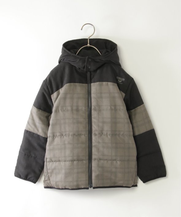 無地とチェック柄の切り替えデザインが魅力のブルゾン。フードの取り外しが可能なため、シーンに合わせて着用できます。ポケットがついておりティッシュ・ハンカチの収納も◎です。【素材】ポリエステル90%、ナイロン10%。【デザイン】フード脱着可能です。【ikkaポイント】従来の中綿アウターから、チェック柄プリントと無地の切り替え・左胸にロゴプリントなど、見え方を大きく変える進化をしました。