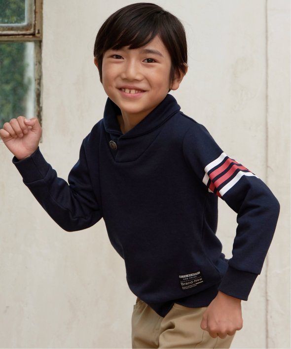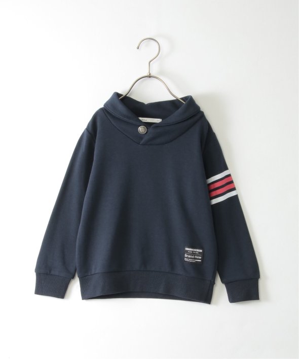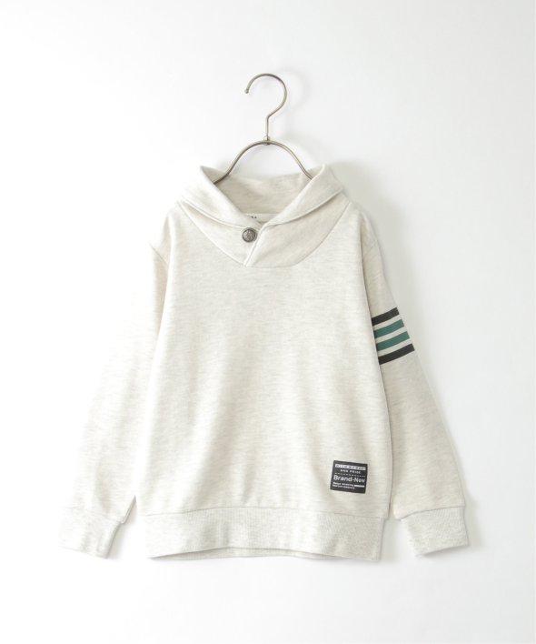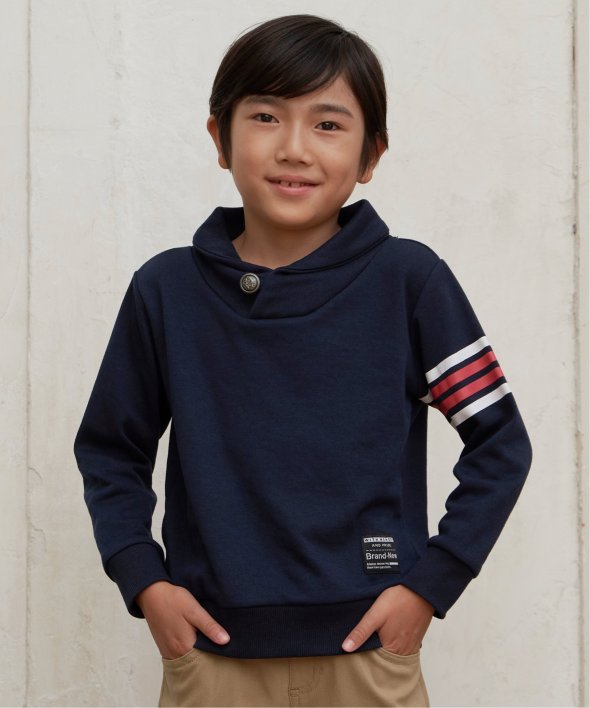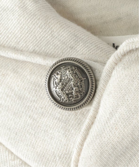 ボリュームのあるショールカラーと、首元のコンチョボタンがポイントのトレーナーです。