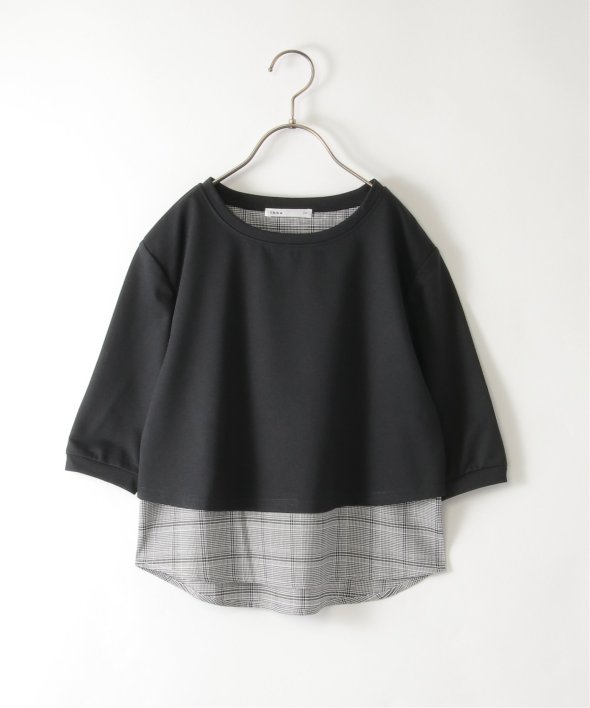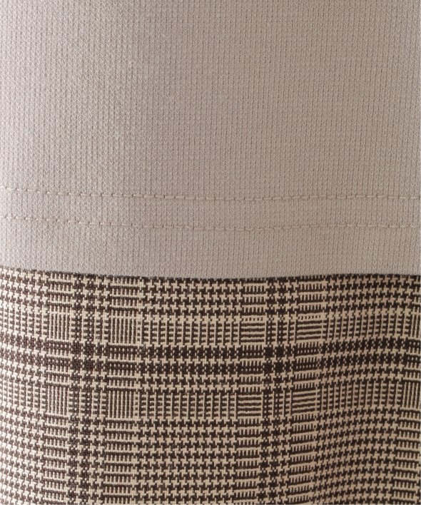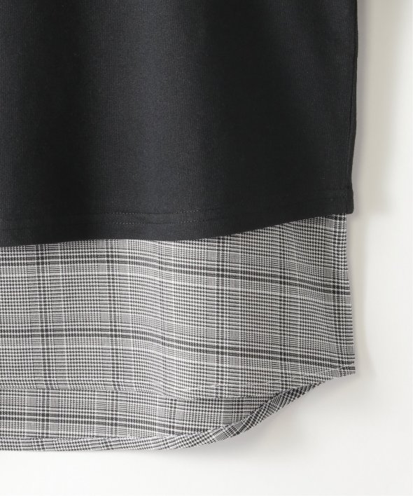 チェック柄布帛とカットソーの2枚合わせ。