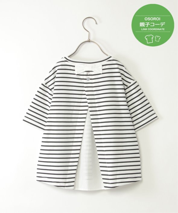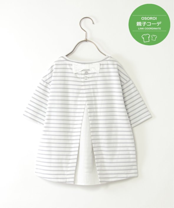 キッズだけのデザインポイントとして、ネック後ろに飾りリボンを付けています。