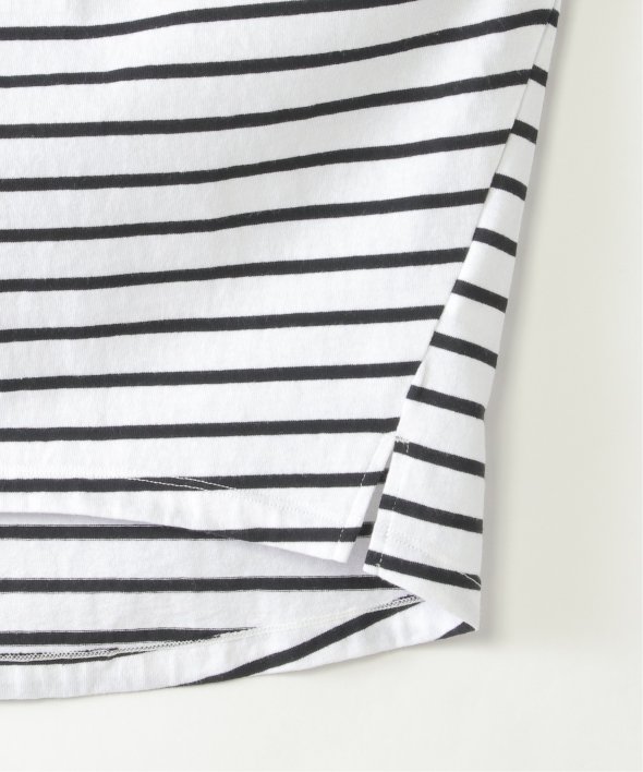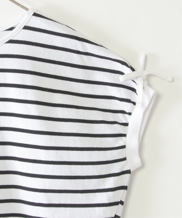 定番のボーダー柄を、袖のリボンとゆったりとしたドルマンスリーブでアップデート。