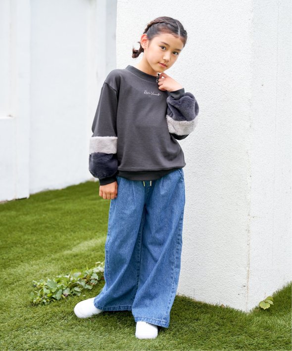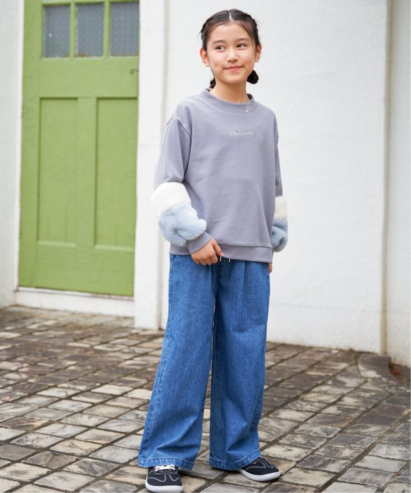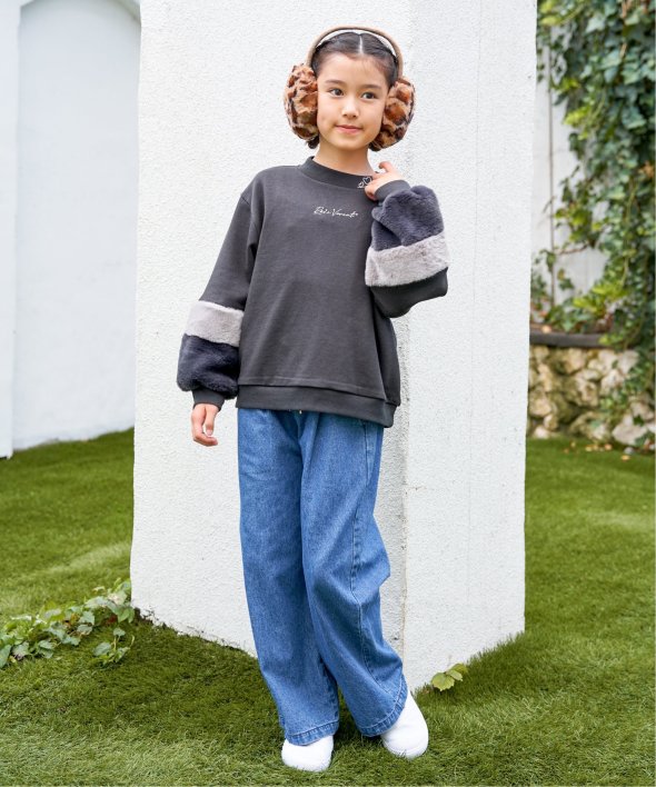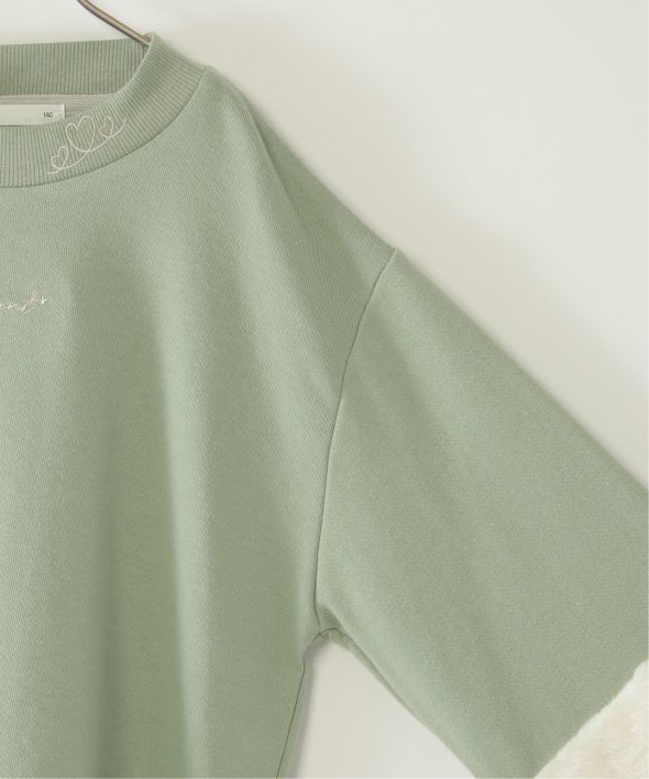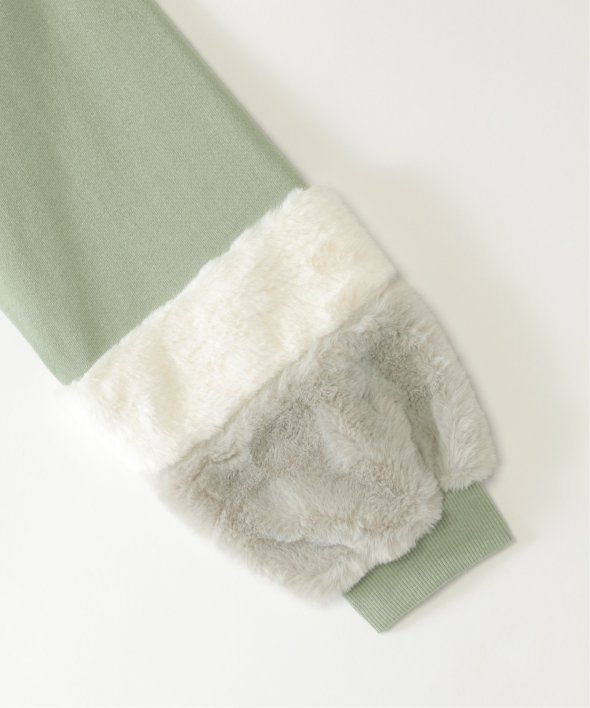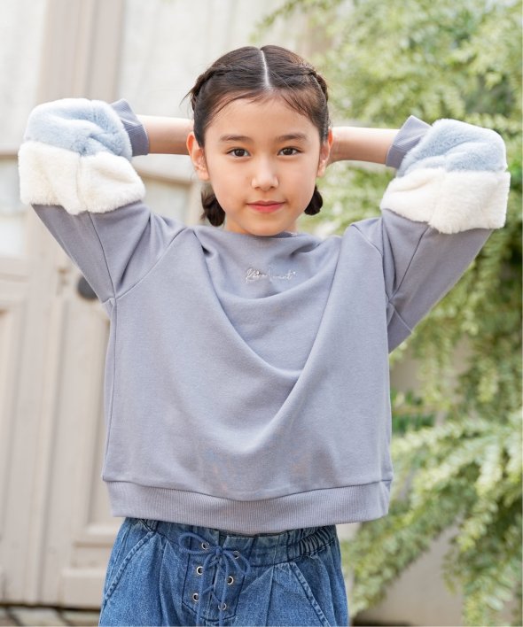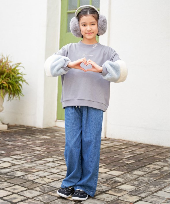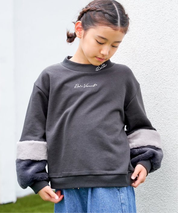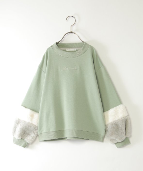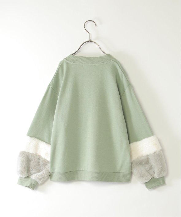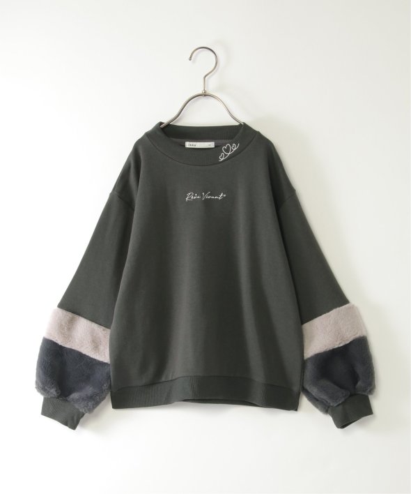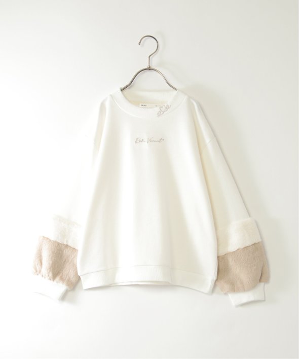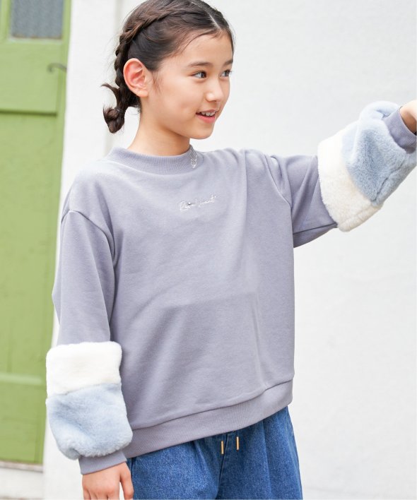 袖口にフェイクファーを切り替えた個性派プルオーバー。小さめのロゴ刺繍にはラインストーンが輝き、さりげなく華やかさをプラス。首元のハート刺繍がアクセントになり、こだわりを感じさせる一着です。【素材】裏毛素材。【デザイン】袖フェイクファー2配色。【ikkaポイント】毎年大人気の袖フェイクファー切り替えプルオーバー。ネックリブ部分への刺繍は継承、胸デザインをラインストーン使いへアップデートしました。