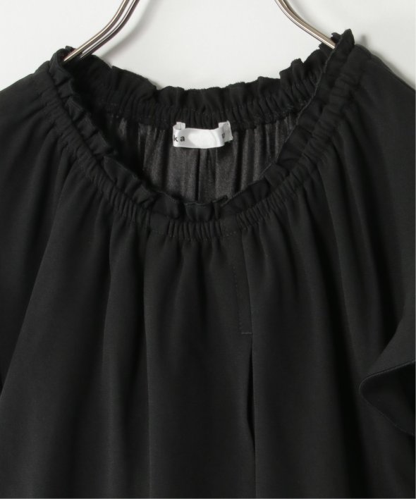 ブラウスのラップデザインがワンランク上のスタイリングを演出。