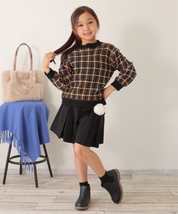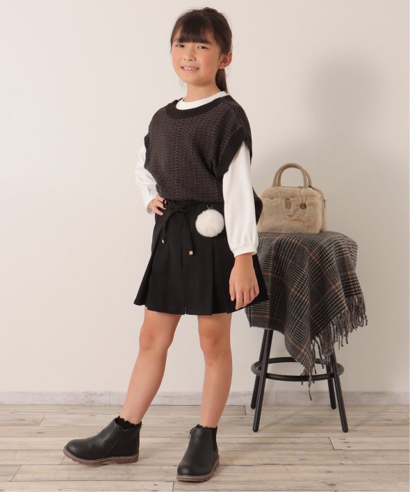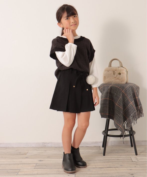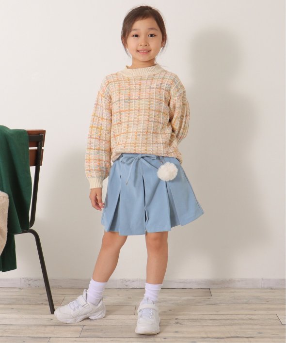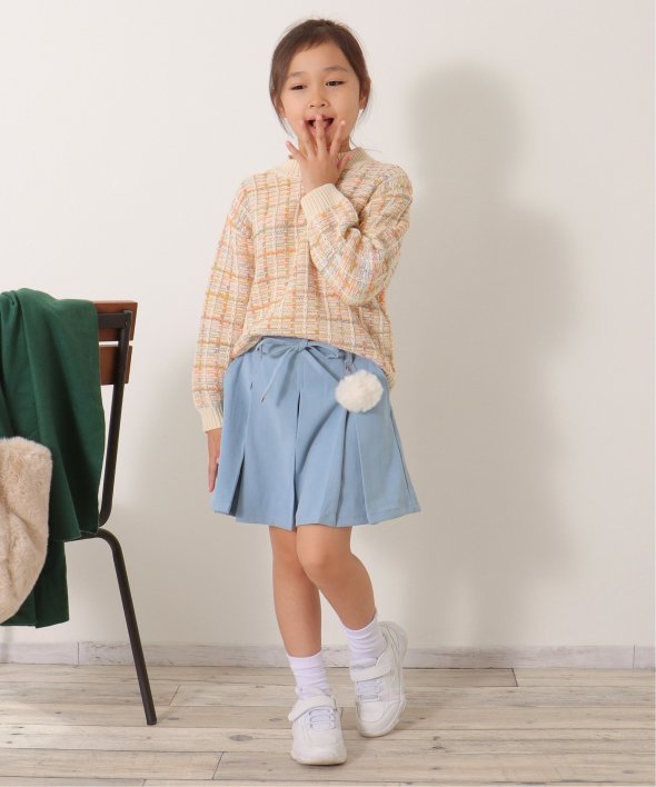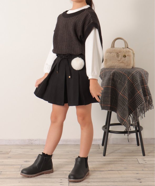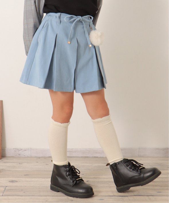 ポンポンチャームでおしゃれ度アップ! ポンポン付きプリーツキュロット(120~160cm)