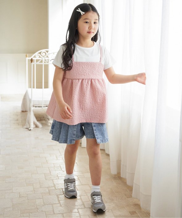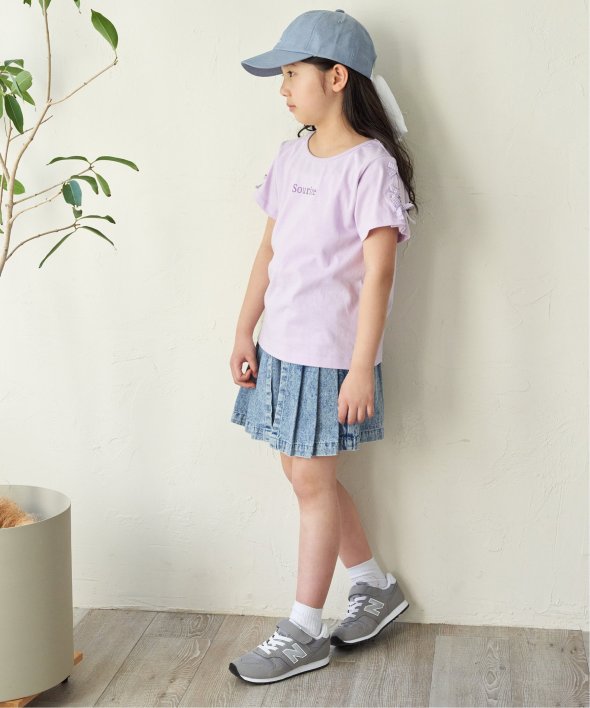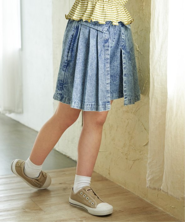 ウォッシュ加工を施したデニム素材のキュロット。ウエスト部分の折り返しデザインがアクセントになり、さりげないおしゃれを演出。スカート風に見えるデザインで、パンツの動きやすさとスカートの可愛らしさを一度に楽しめます。【素材】ケミカルウォッシュデニム。【デザイン】左右から被せたスカート見えパンツ。【ikkaポイント】ティーンズでトレンドのハードウォッシュ加工したボトム。ウェストの折り返し仕様も、トップスインした時アクセントになります。 [洗濯方法]洗濯の際はネットを使用してください