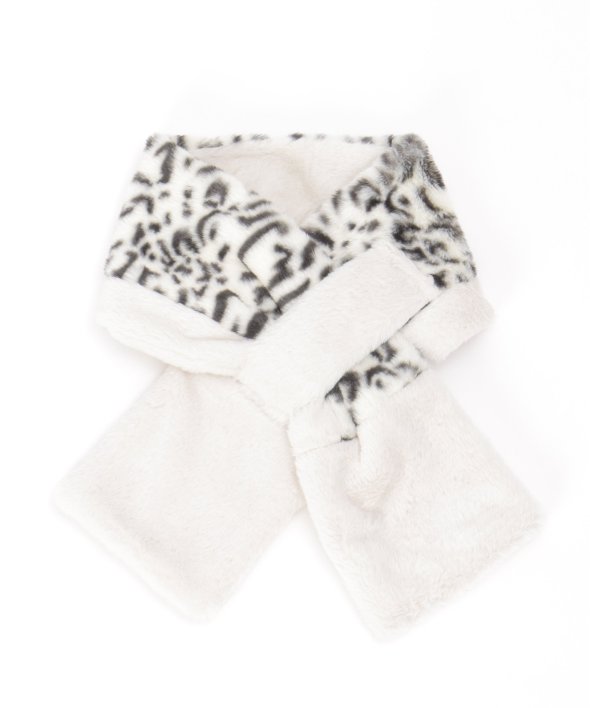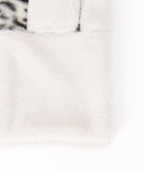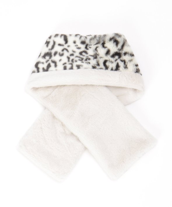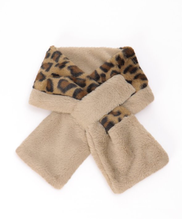 ふわふわタッチのフェイクファーが心地良いマフラー。アニマル柄の切り替えを入れ、大人っぽいエッセンスを加えました。【デザイン】差し込みタイプなのでお子さま1人でも着用しやすい!リバーシブル仕様です。【ikkaポイント】毎年好評のフェイクファーマフラー。無地と柄の両面使えるの点が◎