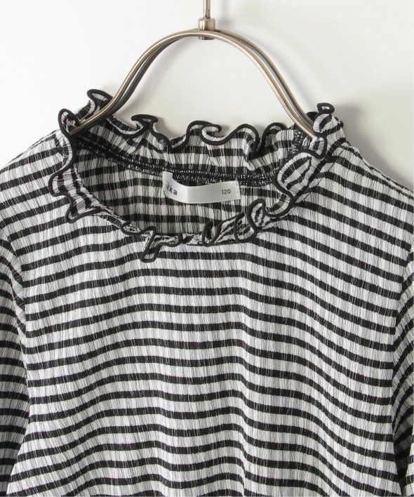 クラシカルなチェック柄に、チビ襟や袖口のフリルがアクセントとなり、かわいらしさをプラス!