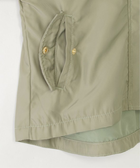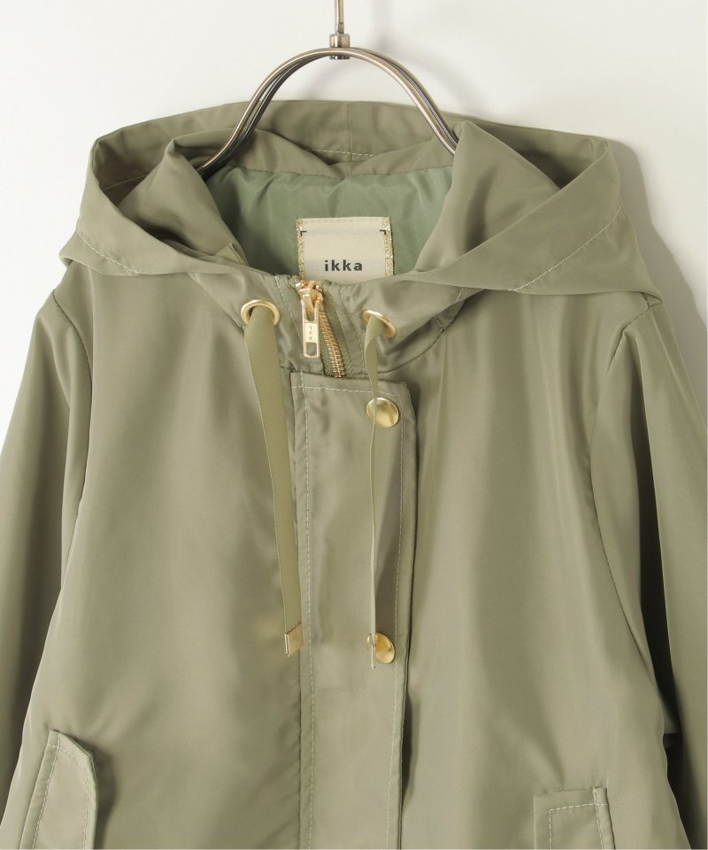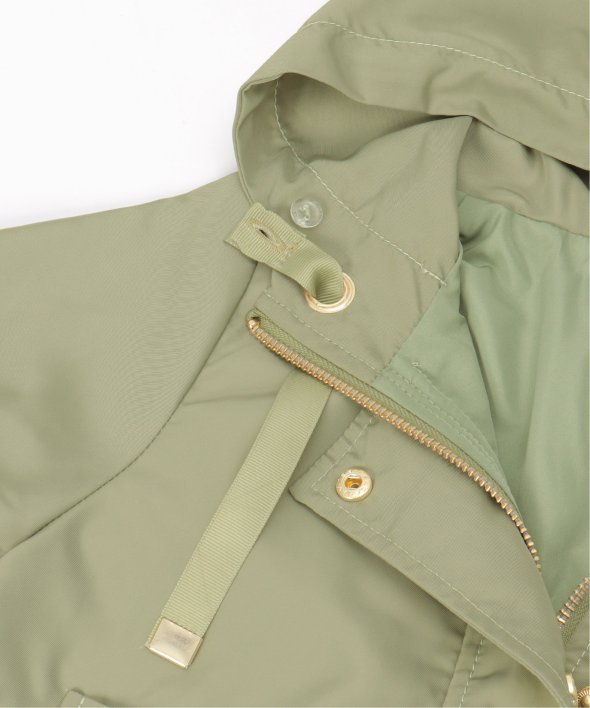 微光沢感のあるサテン生地を使用した、上品な印象のマウンテンパーカー。
