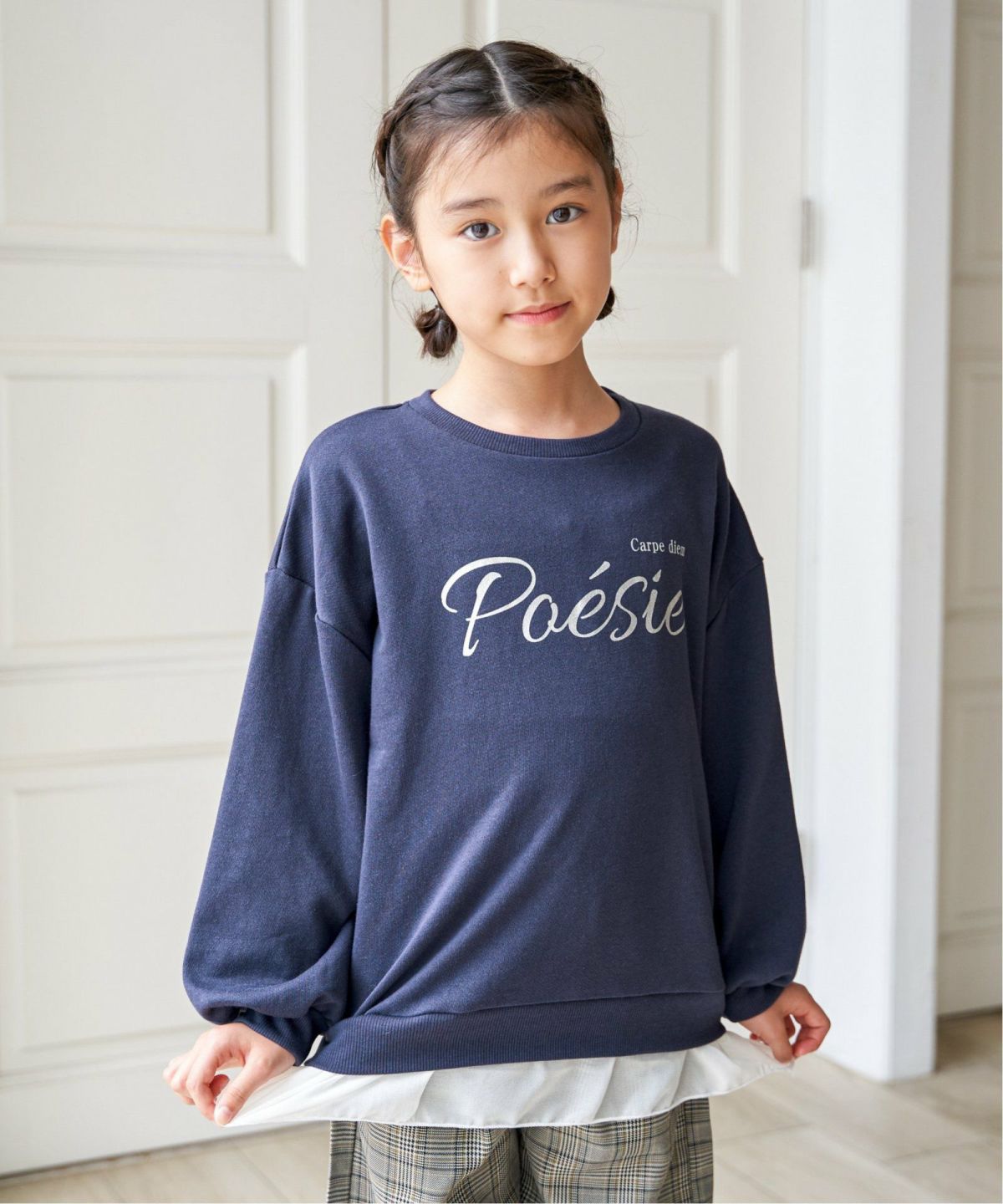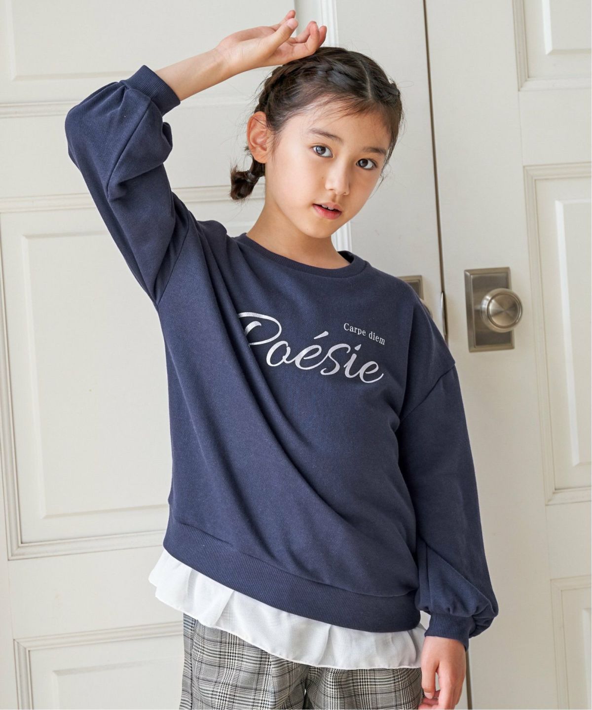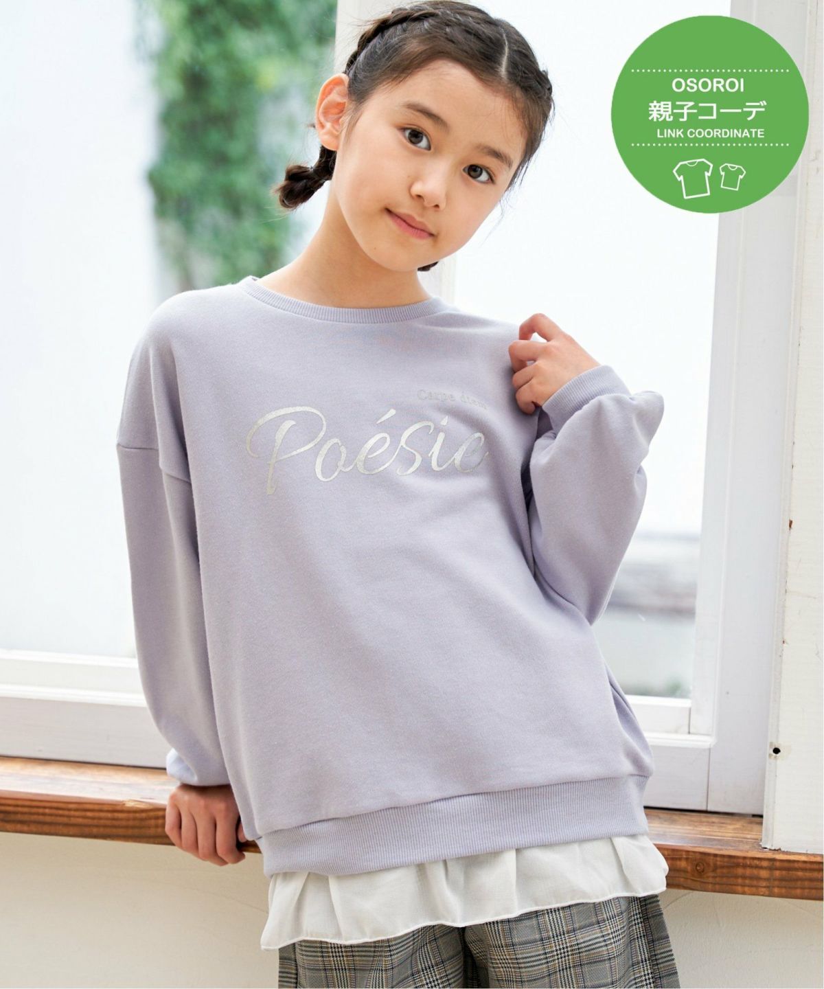箔ロゴ×裾シフォンで、普段着もお出かけ仕様に♪ 【親子コーデ】裾シフォン箔ロゴプルオーバー(120~160cm)
