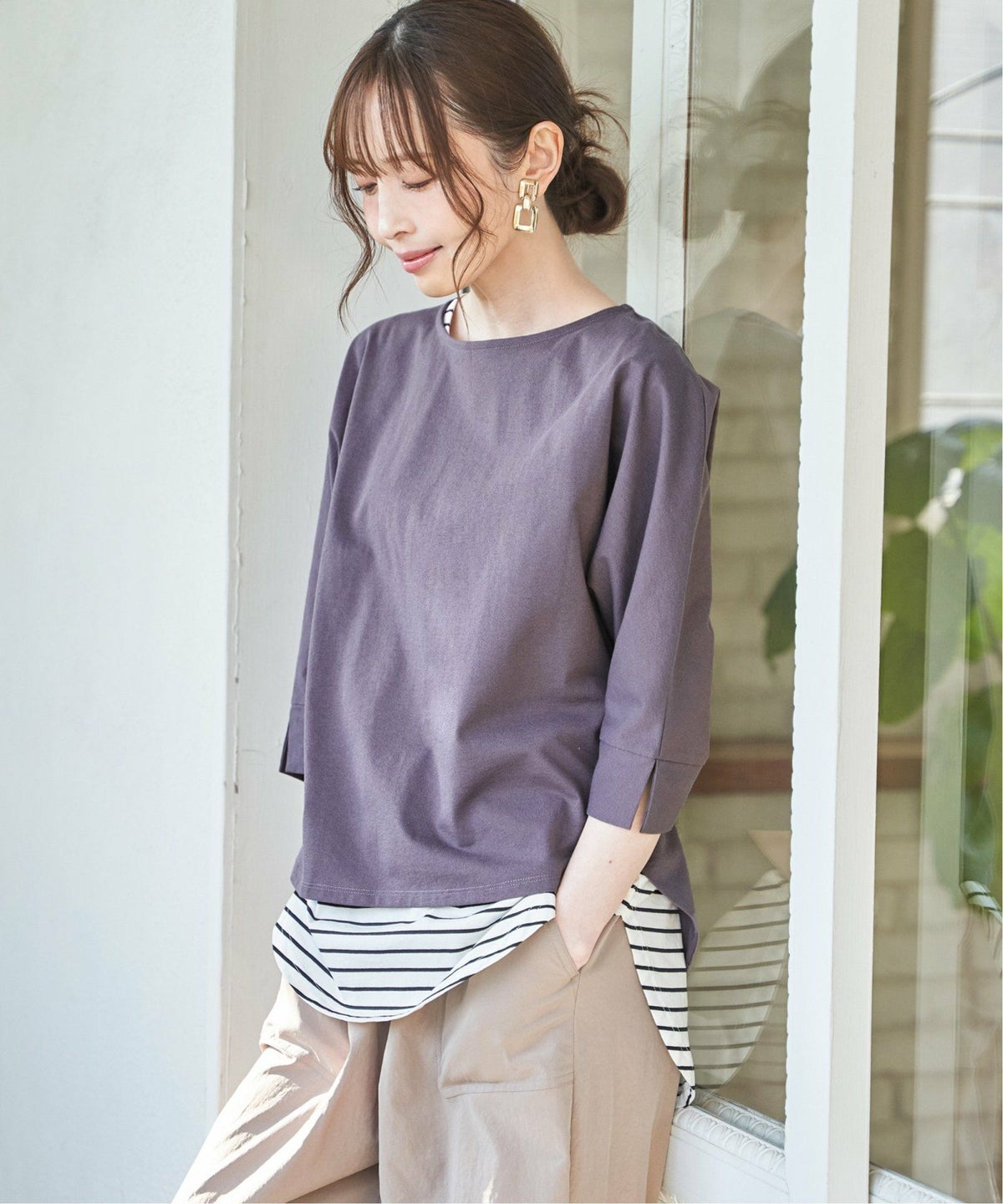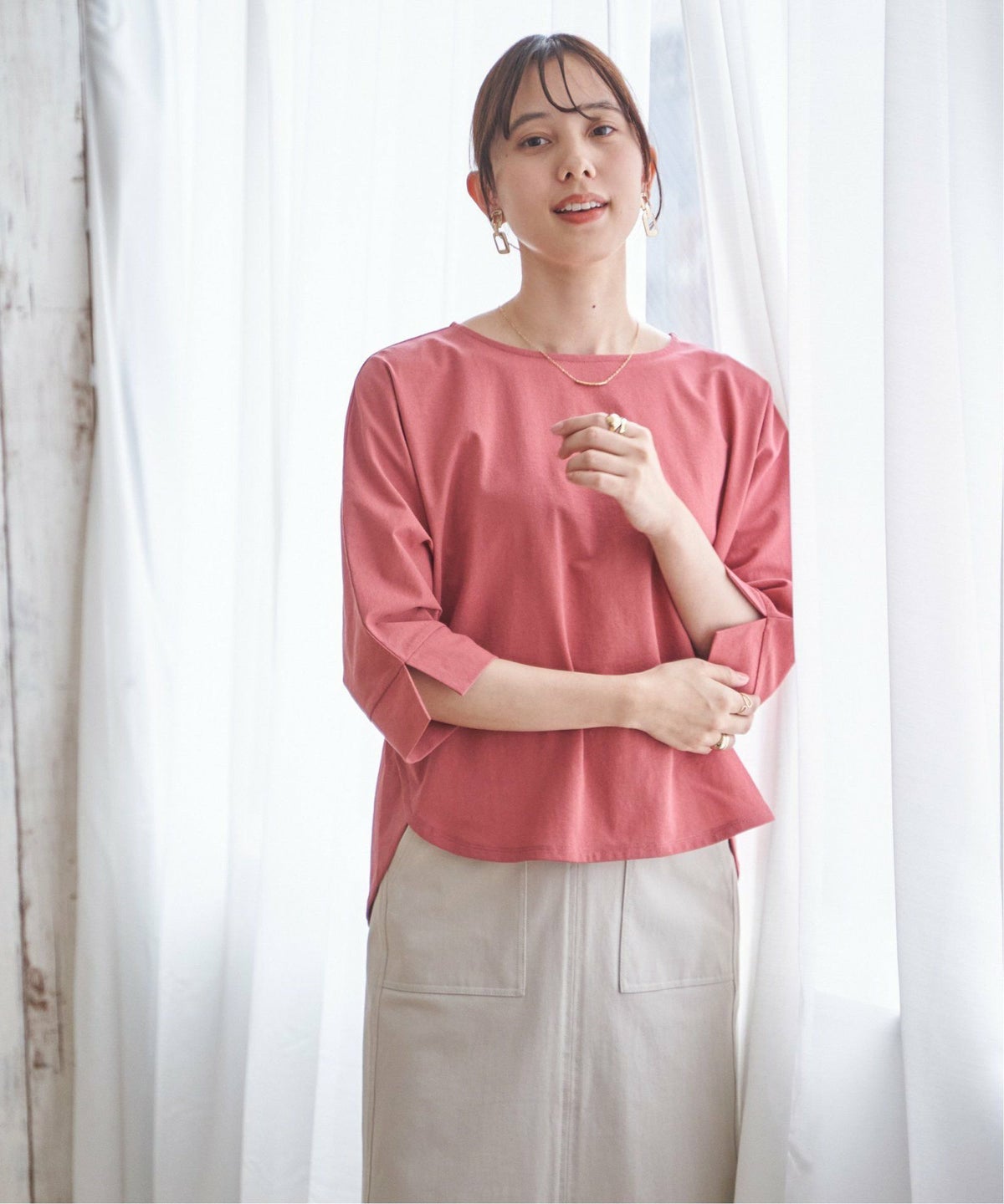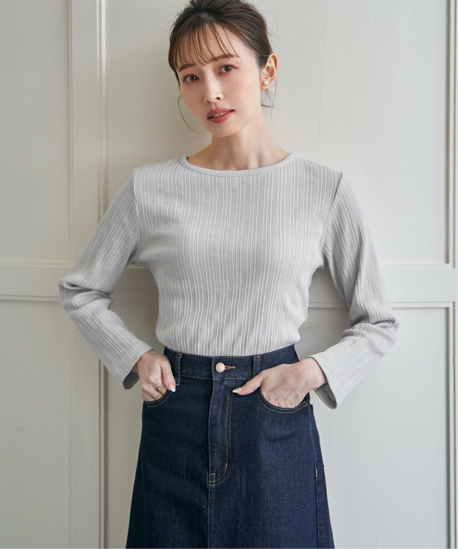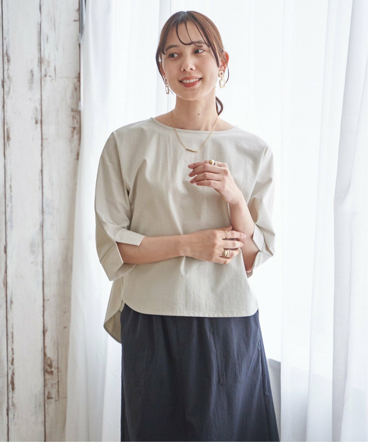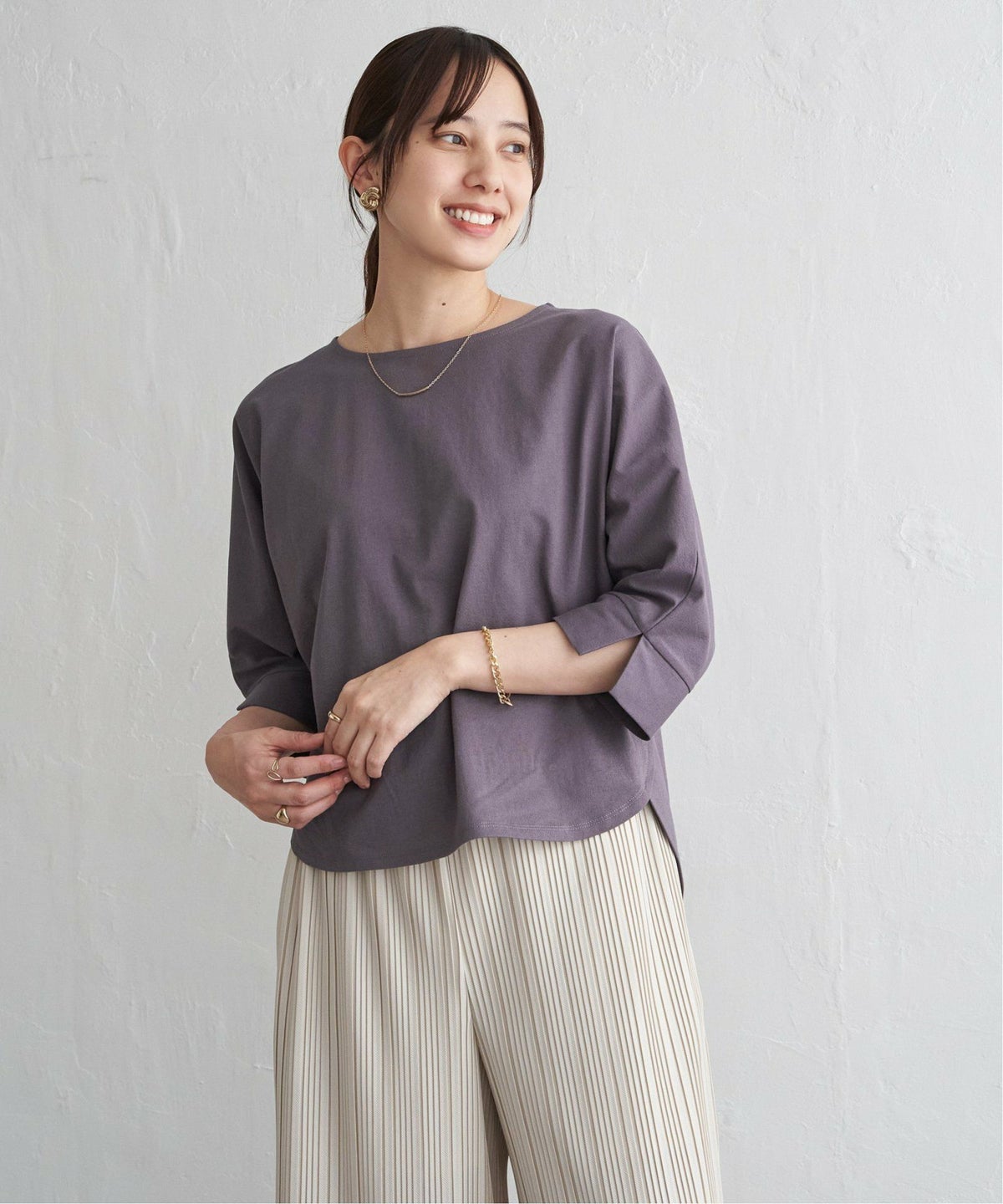 一枚でも重ねても使える、毎日にちょうどいいロンT コットンUVケア裾ラウンドロンT