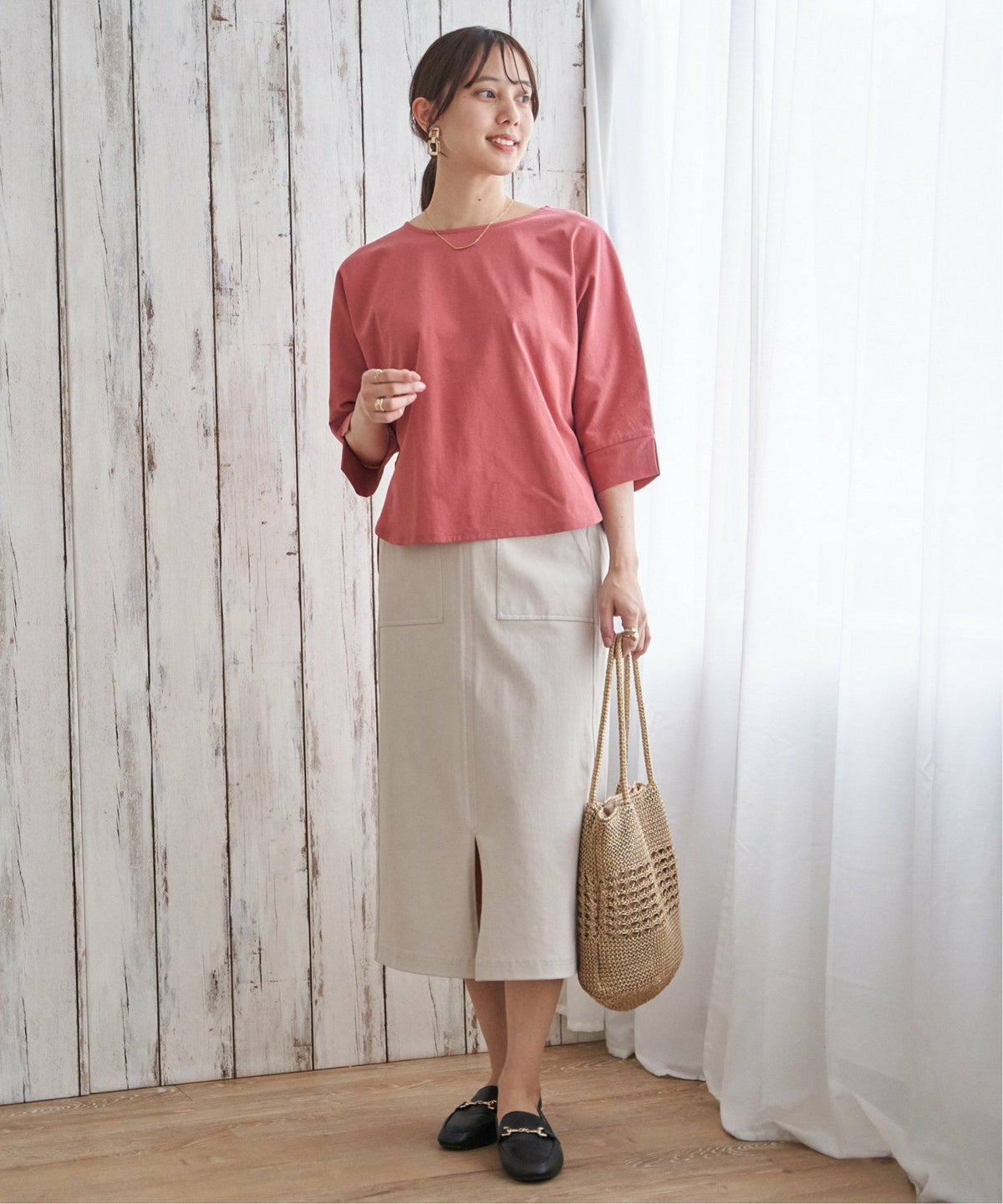 重ねるだけで今のバランスが整うセットアイテム 【雑誌InRed5月号掲載】シア-ロゴプリント 7分袖プルオーバーセット【2点セット】