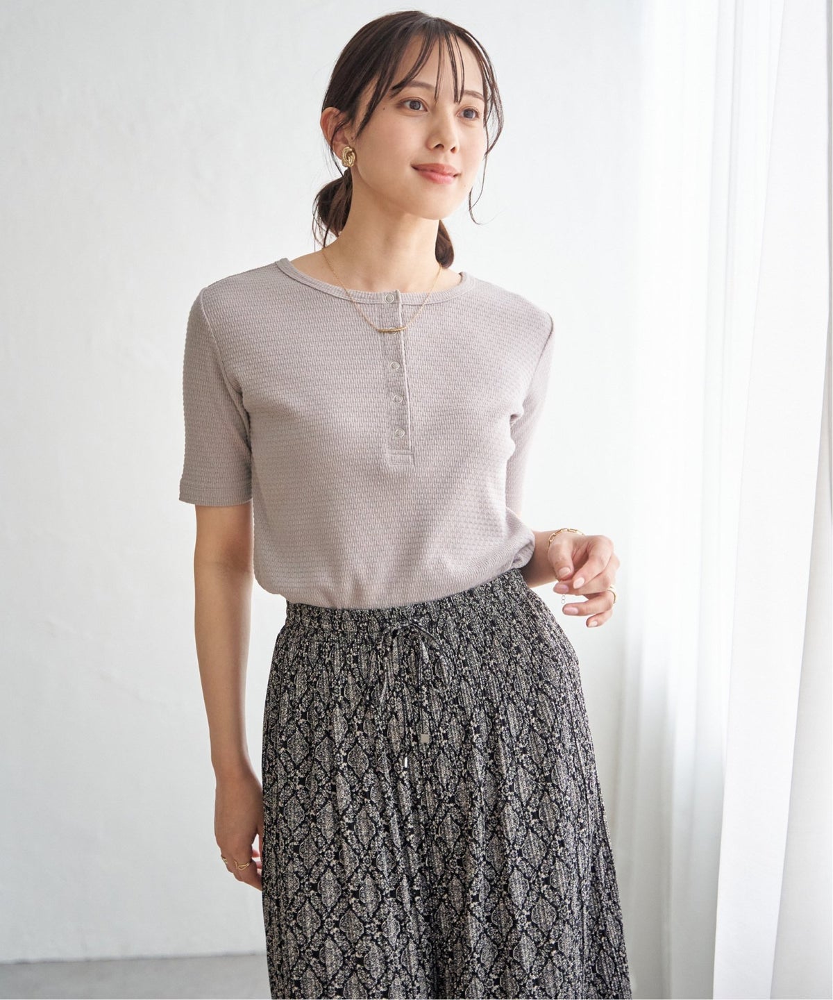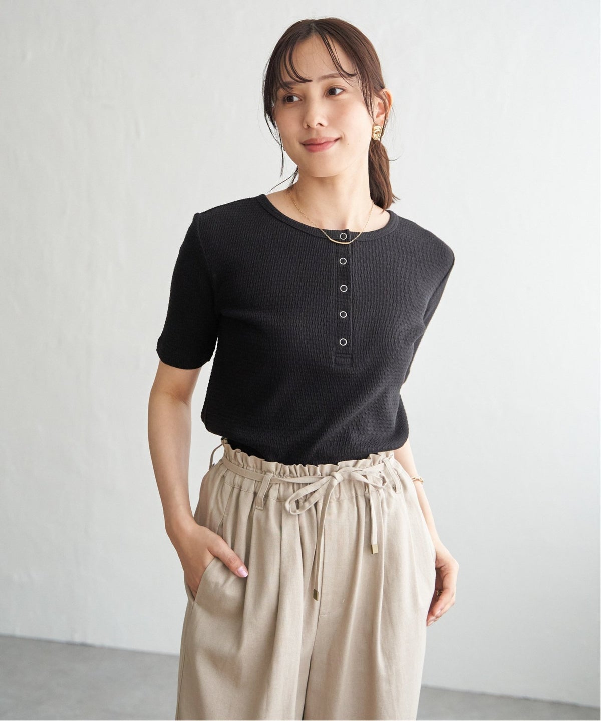 一枚着しやすい2WAYプルオーバー 前後2WAYヘンリーネックプルオーバー