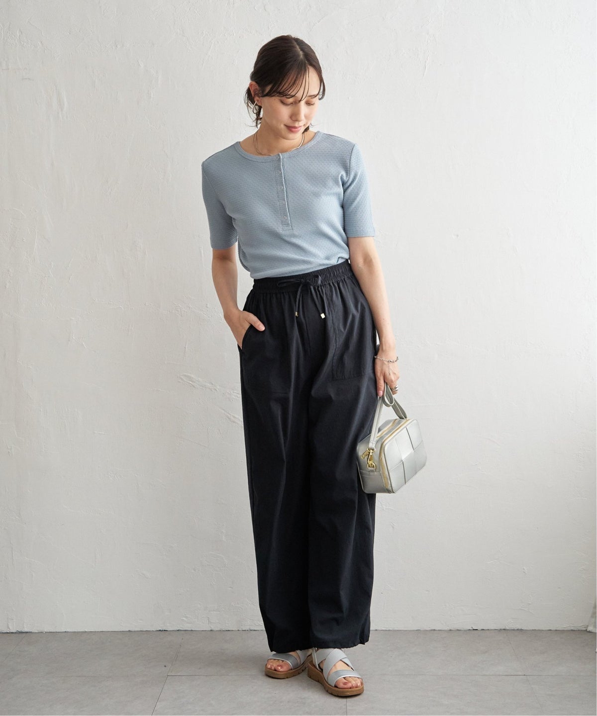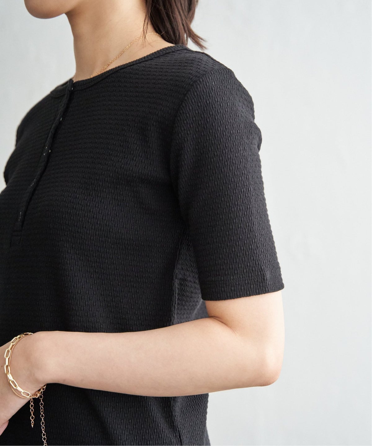 後ろ姿まで印象的に見せる、計算されたデザイン 冷感梨地バックスリットプルオーバー