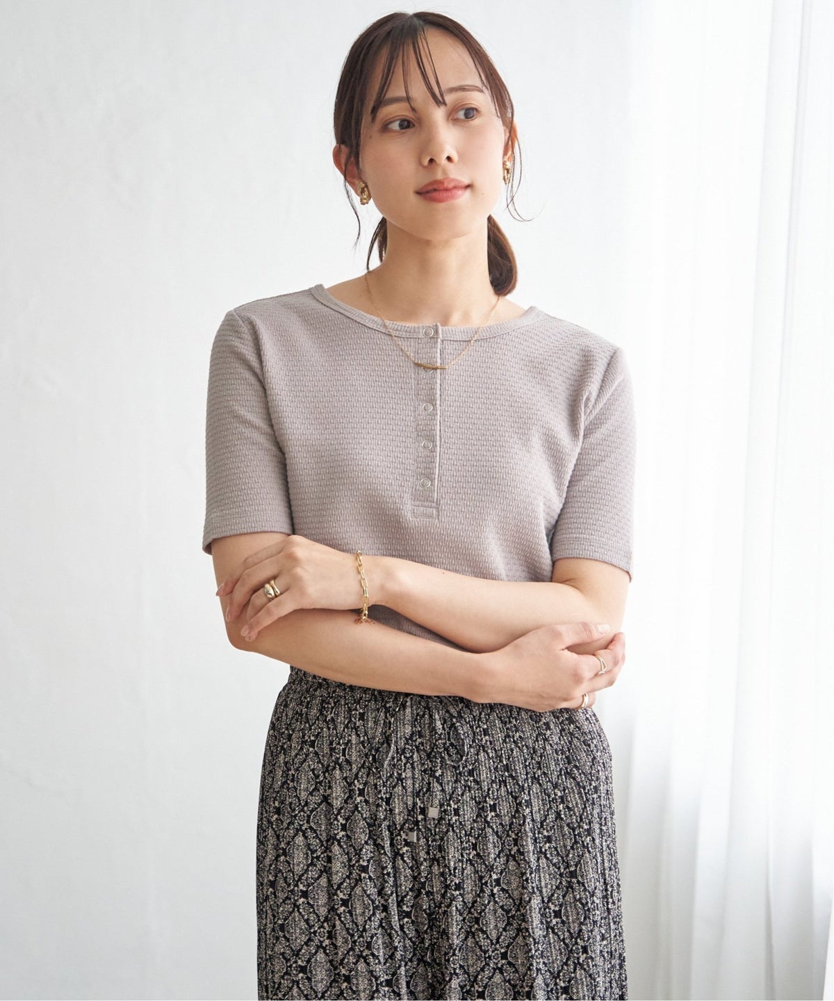 袖コンシャスなデザインが着こなしを新鮮に ジャガードホイップスリーブプルオーバー