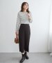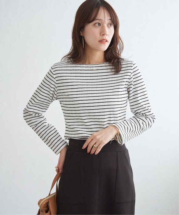 ストライプのジャガード生地でスッキリ見えするプルオーバー。