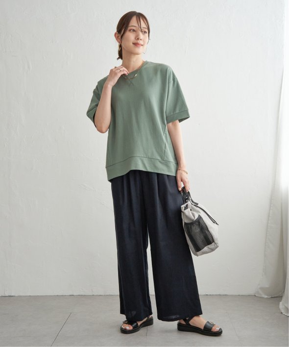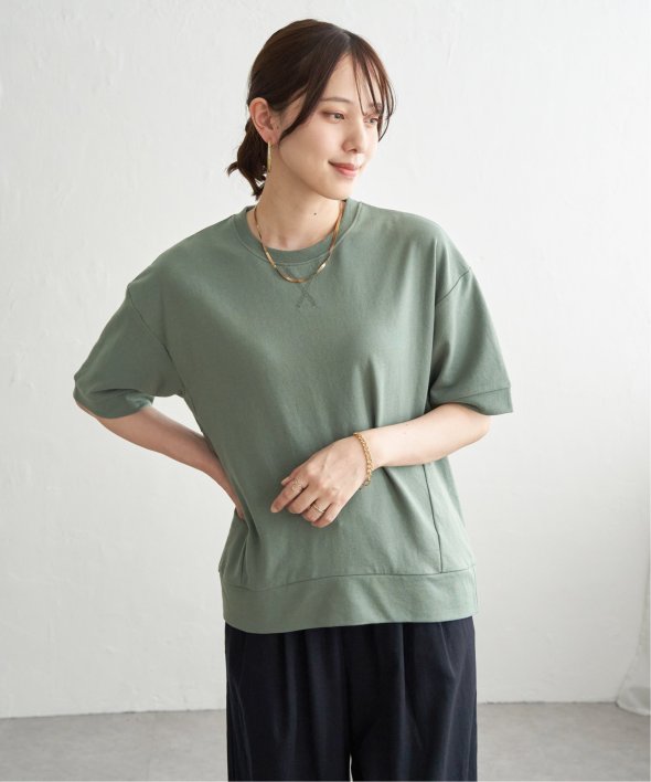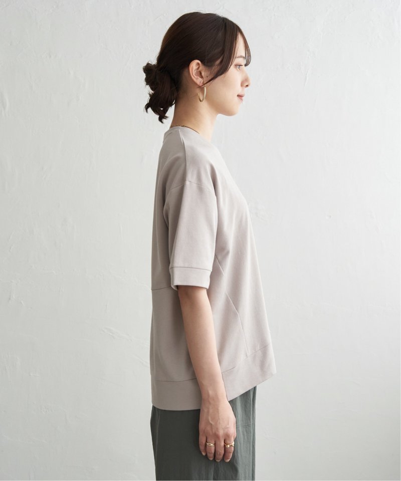 スウェットのようなリブ使いとVガゼットでシンプルなカットソーにトレンド感をプラス。見た目はスウェット、着心地はひんやりとする接触冷感で、暑い夏も快適に着用できるプルオーバーです。【素材】接触冷感素材を使用したカットソー。【デザイン】Vガゼットやリブ使いでスウェット見えするデザインに仕上げました。【ikkaポイント】・夏でも快適なミニ裏毛の雰囲気を取り込んだスウェットTシャツ。・ほどよくゆとりのあるサイズ感で、前後の着丈に差を付けてバランスが取りやすいデザイン。