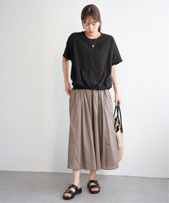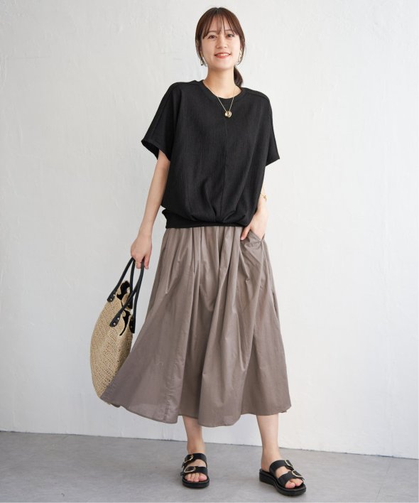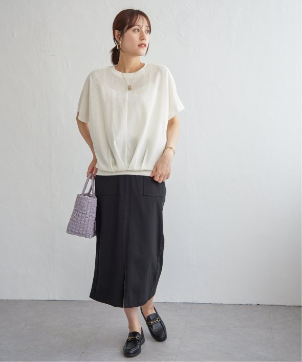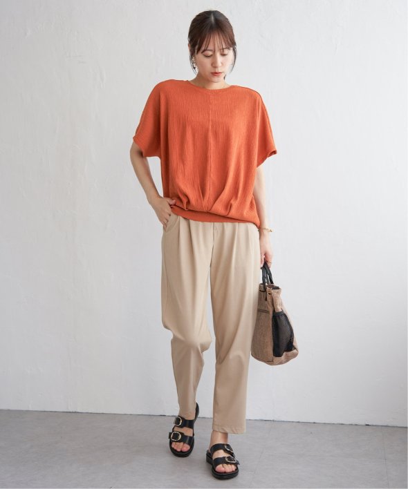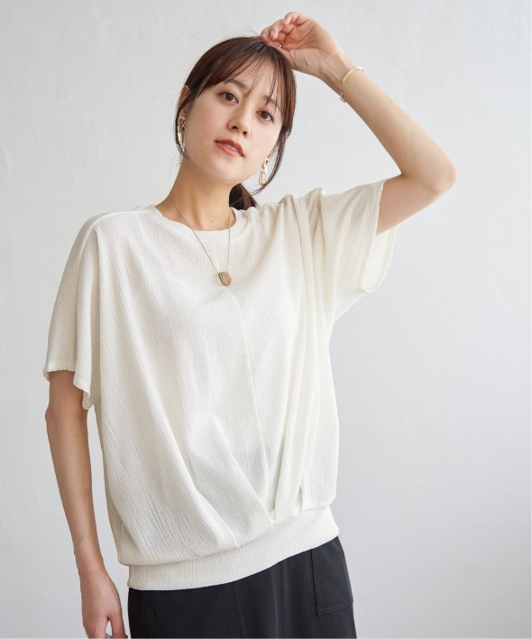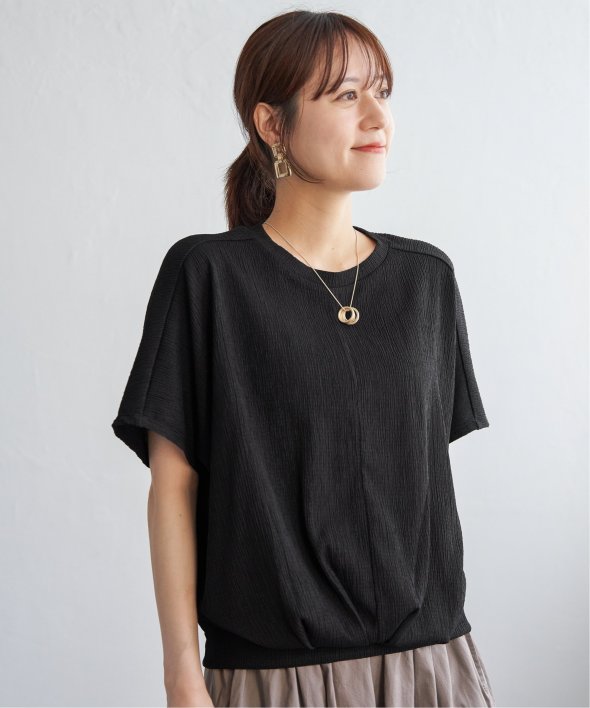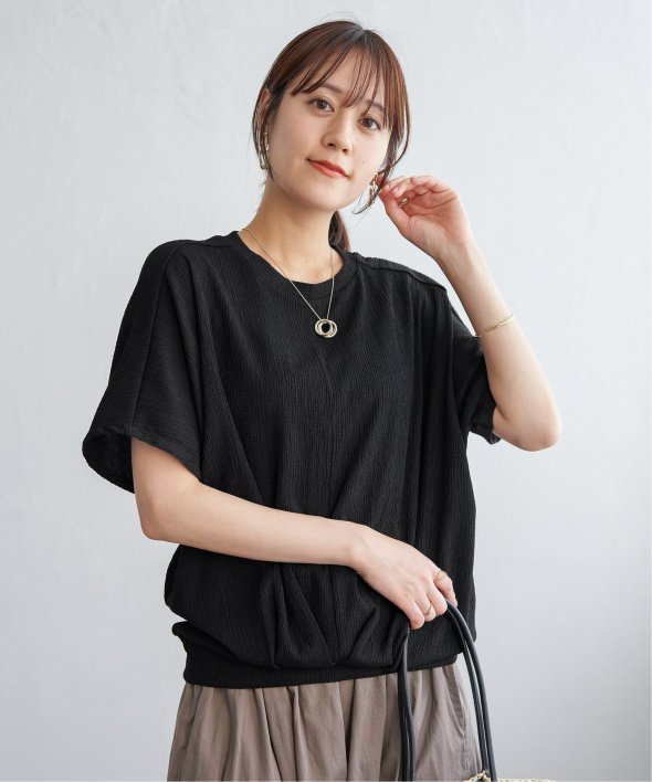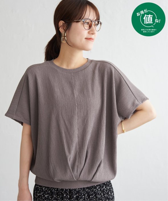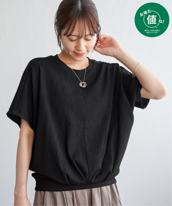 【お得だ値!対象】定価でもお求めやすくご用意しております。ポコポコとした凹凸のあるジャガード素材のプルオーバー。ゆったりとしたドルマンスリーブに加え、裾には大胆なタックを施し、タックインしているような立体感のあるシルエットに仕上げました。【素材】凹凸感がありドライタッチな小ぶりな柄のジャガード素材は、高級感がありながらも、暑い時期には涼やかな素材で心地よく着こなしていただけます♪ 【デザイン】裾に大きめのタックを入れることでタックイン風に見え、二の腕カバーできるドルマン袖のトップス。落ち感があるきれいめの素材を立体的なシルエットにすることで、更に高見えするテクニックが魅力的です。お値段以上のデザイントップスで、お出かけやきちんとした場面にもふさわしいアイテムになります。 【ikkaポイント】着やせして見える美シルエットのトップスは、must have♪ このお値段で、カラバリ豊富なトップスは洗い替えでも何着でももっておきたいもの。 秋まで着られるカラーで、長く着ていただくのがikkaのこだわりです! ■ お得だ値 (ね)!とは?普段より「お得な価格」で提供している商品です。- コストダウンの取り組み -・生産地を見直し、製造コストをダウン・工場の閑散期に生産することで、製造コストをダウン・オリジナル素材を開発し、素材コストをダウン今シーズンは「値下げ」をしない安心価格です!
