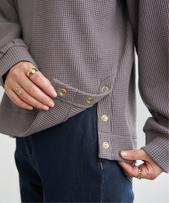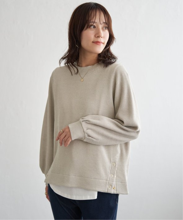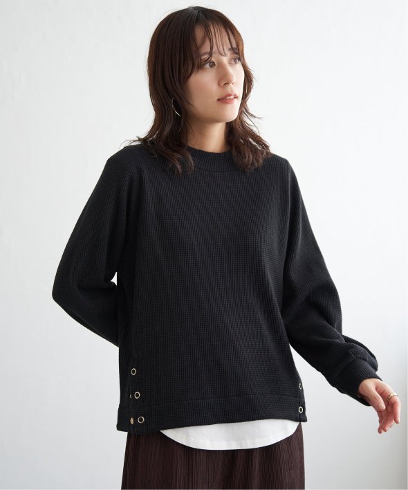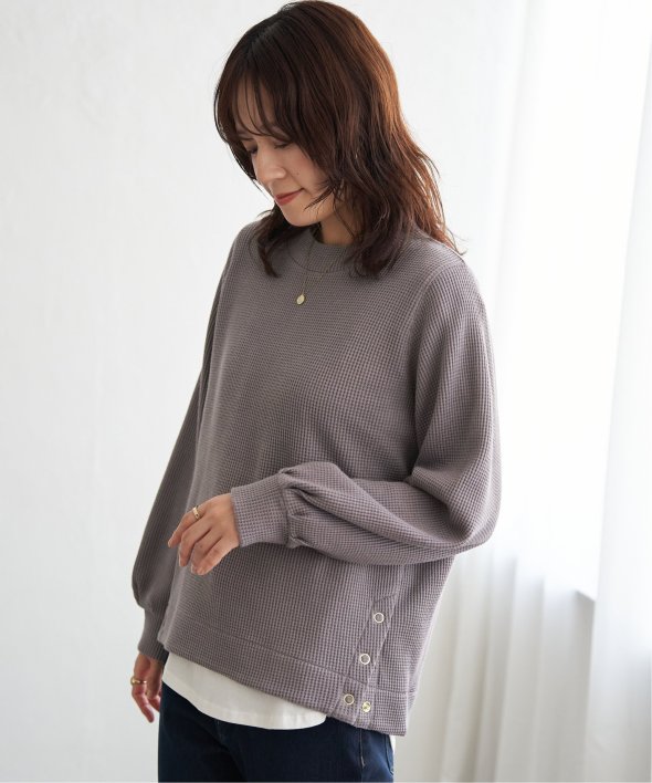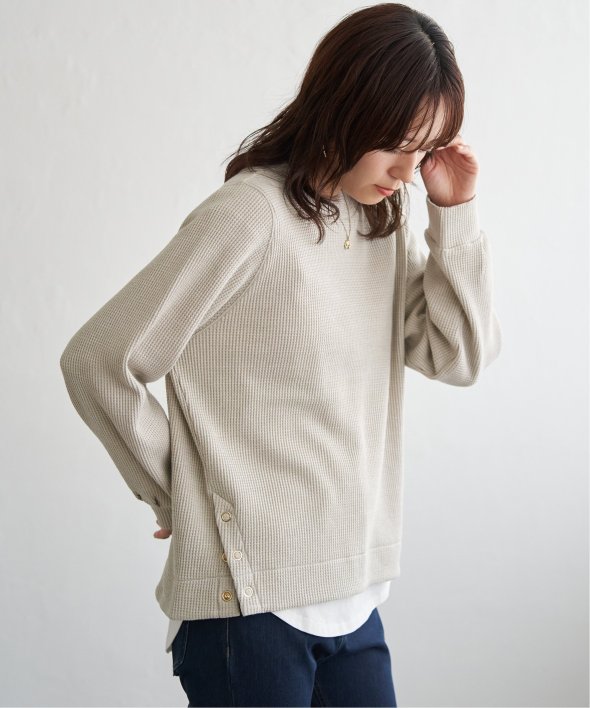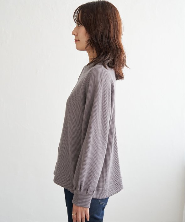 ラメを織り込んだワッフル素材が、カジュアルな中にほのかな華やぎをプラスするプルオーバー。