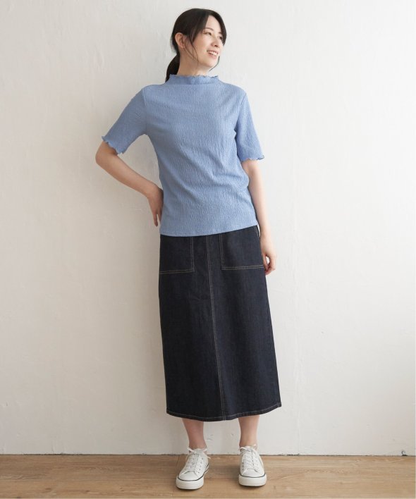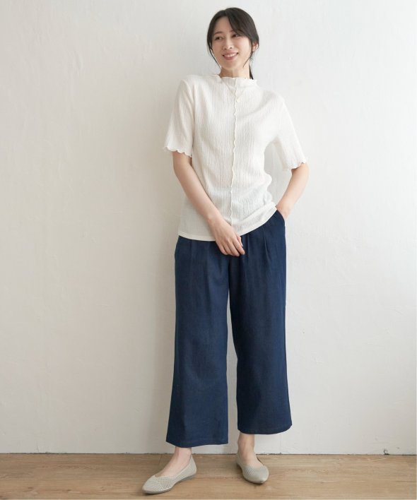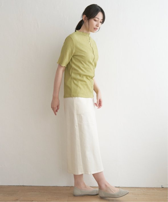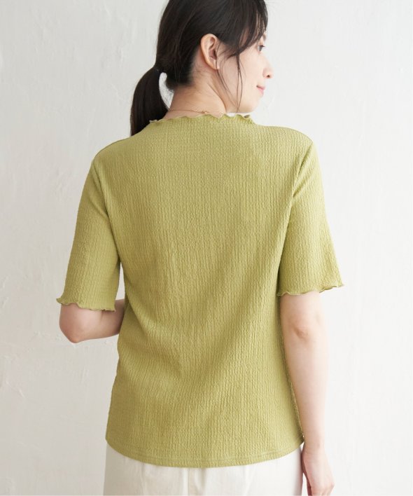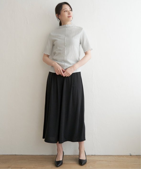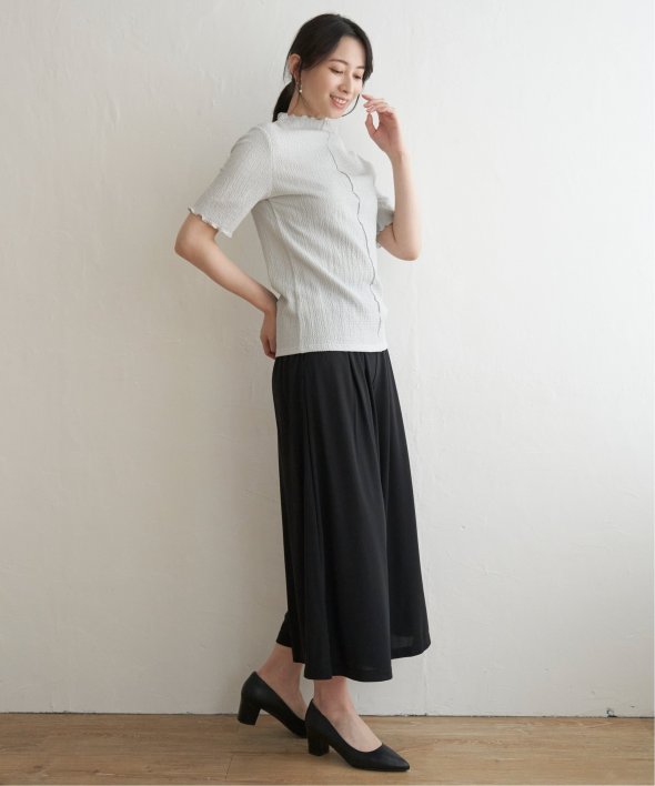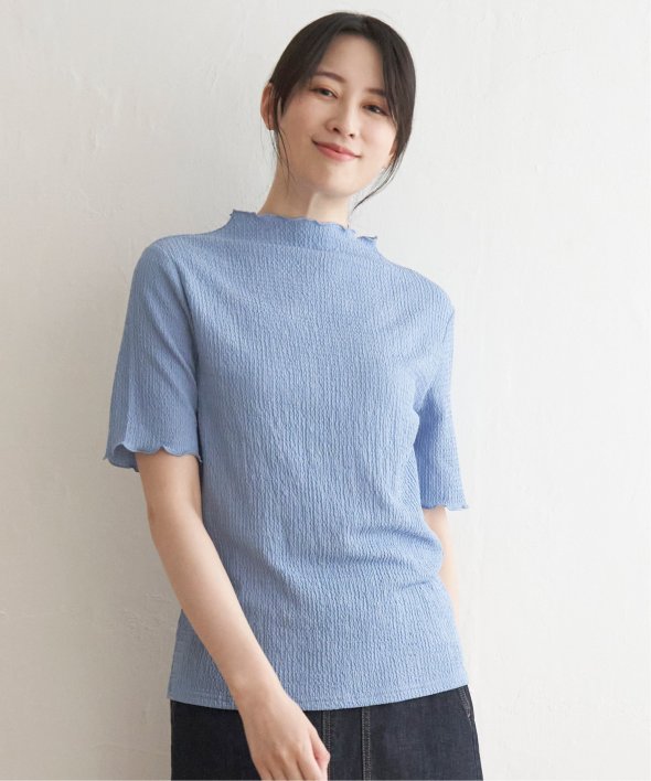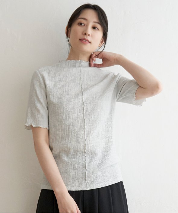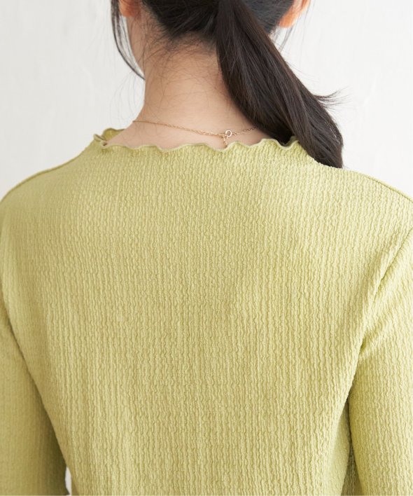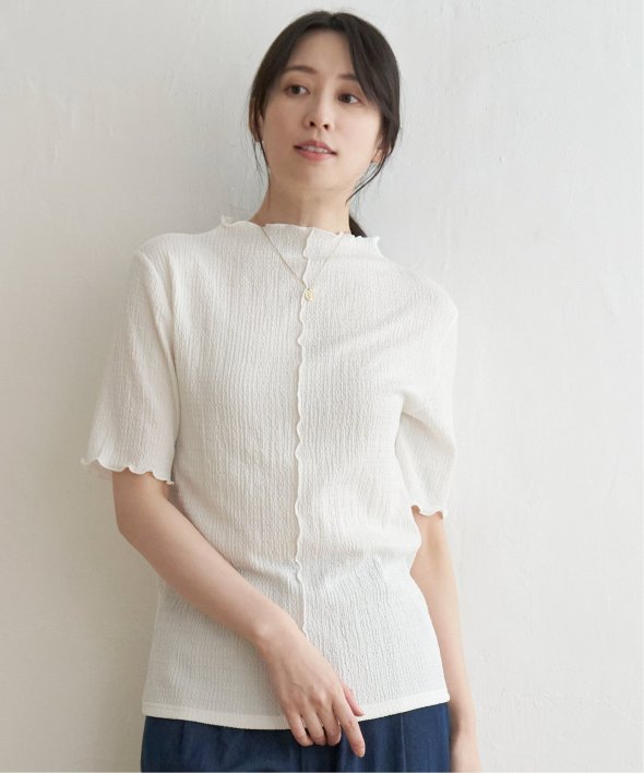 メロウフリルや少し高さのあるネックデザインなど、トレンドの詰まった一枚です。