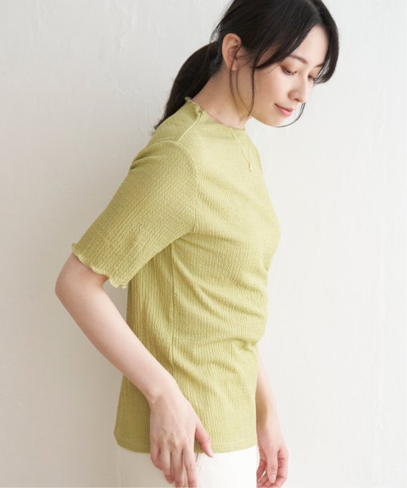 素肌がほんのり透ける、シアー感が今どきなシャーリングトップス。