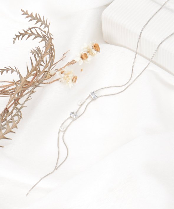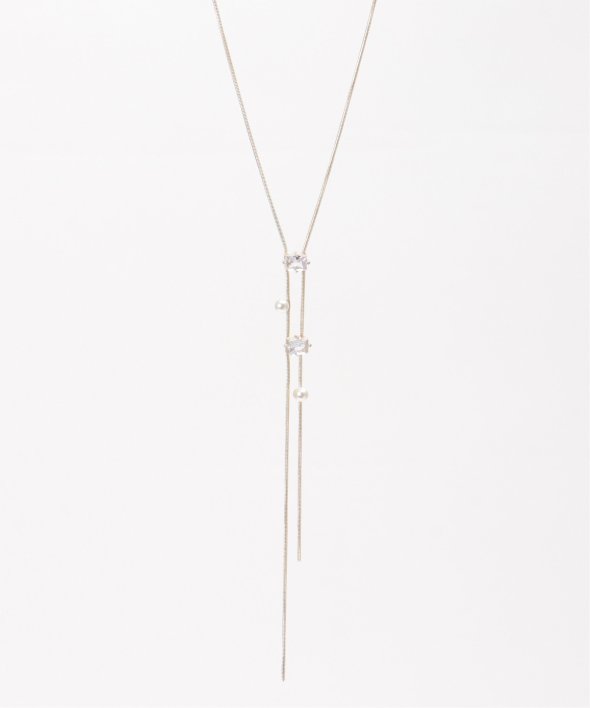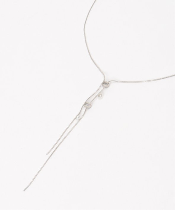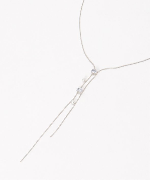 胸元をすっきりと演出するY字型のネックレス。華奢なデザインでありながら、存在感も発揮するアイテム。【デザイン】Y字型のチェーンネックレス。【ikkaポイント】・小ビジューと小パールが連なった華奢ネックレス・Y字型で、キレイめスタイルと相性◎・アジャスターで微妙なサイズ調整可能