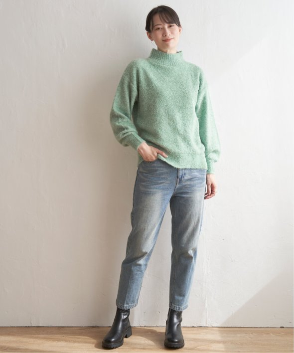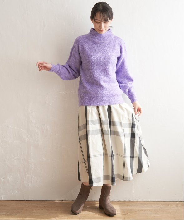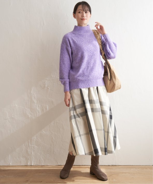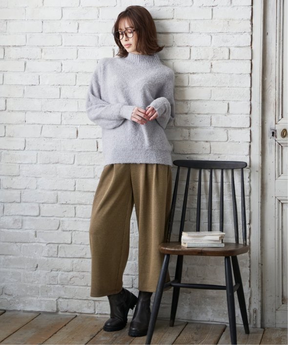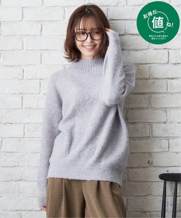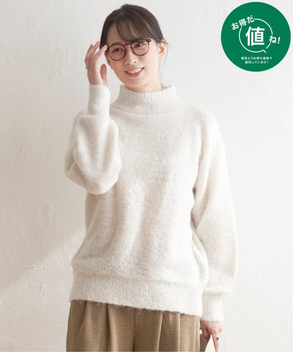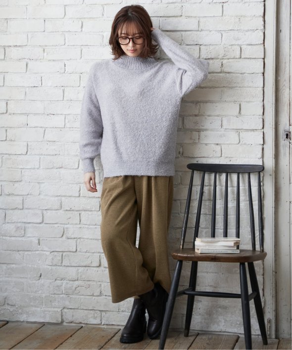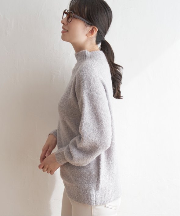 ハイネックにゆったりとしたシルエットが今っぽく、大人かわいいニットに仕上がりました。