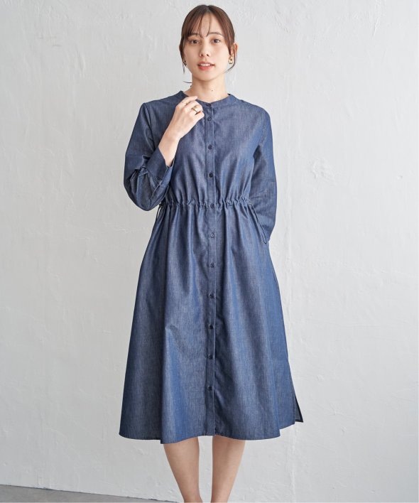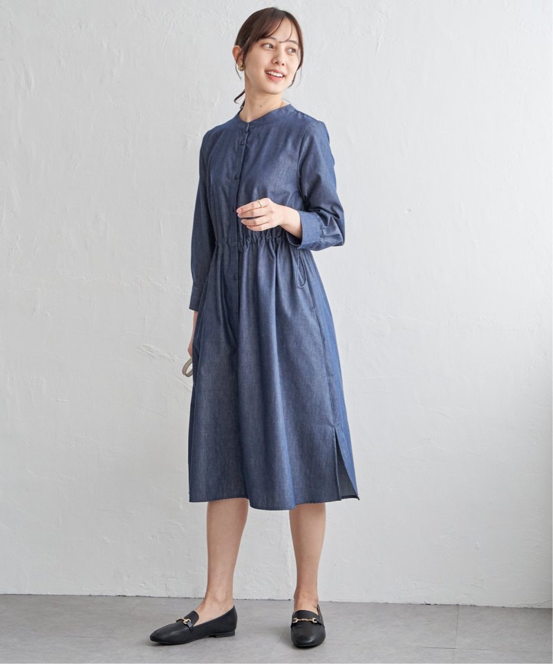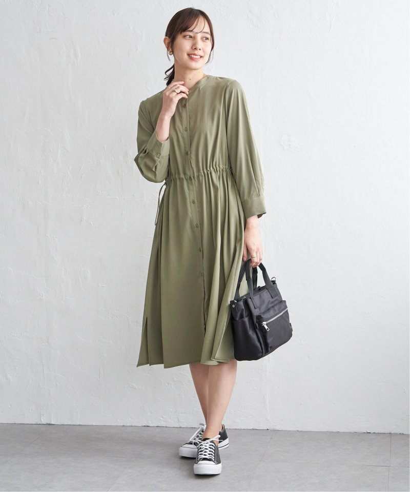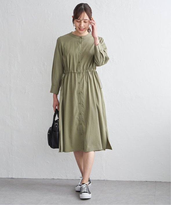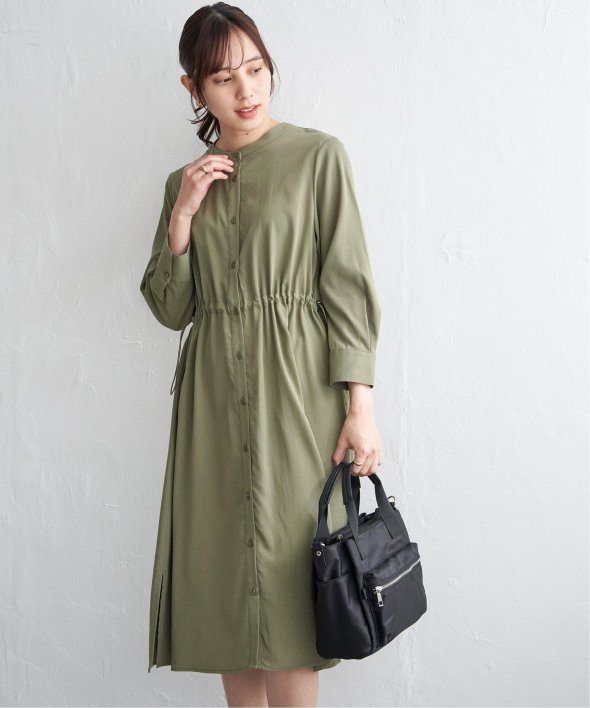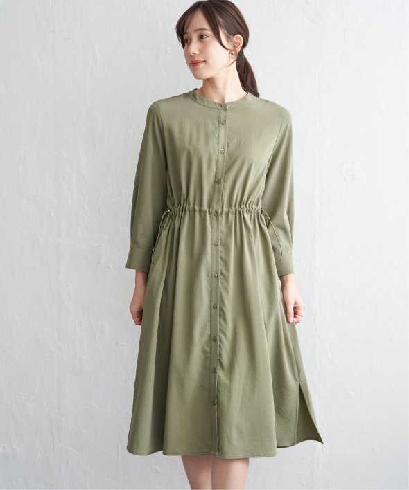 快適な素材感ときれいなフォルムを両立した一枚 【先行予約】バンドカラーウエストドロストワンピース