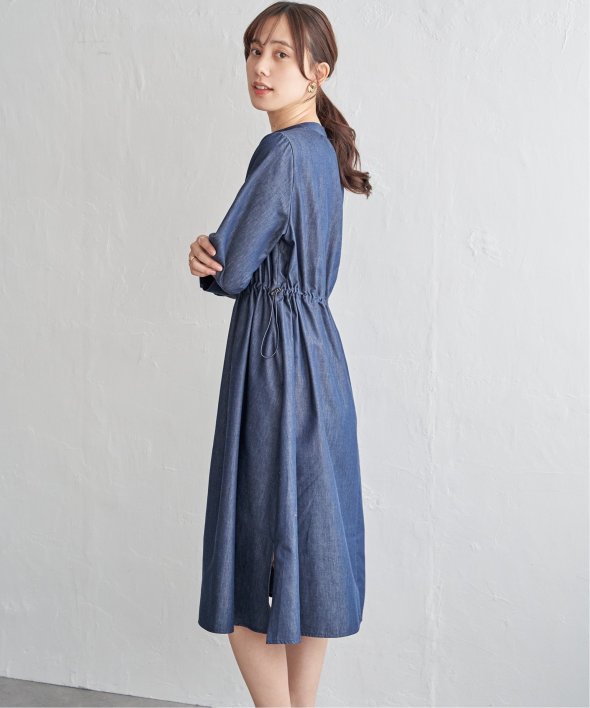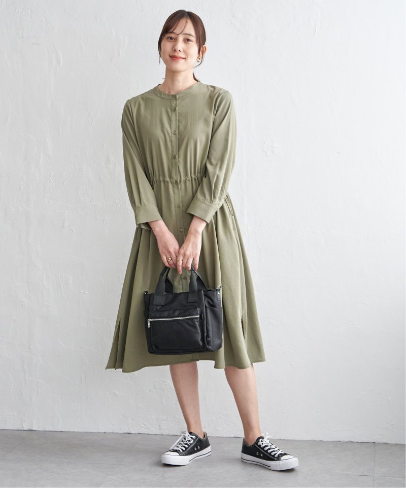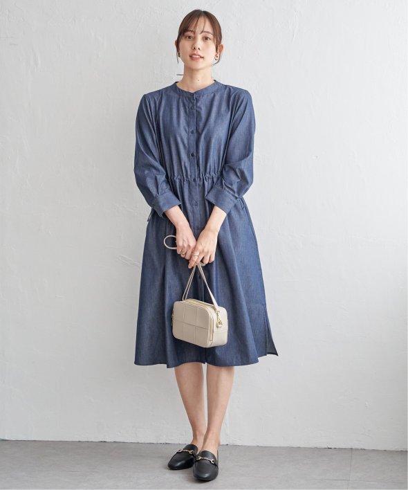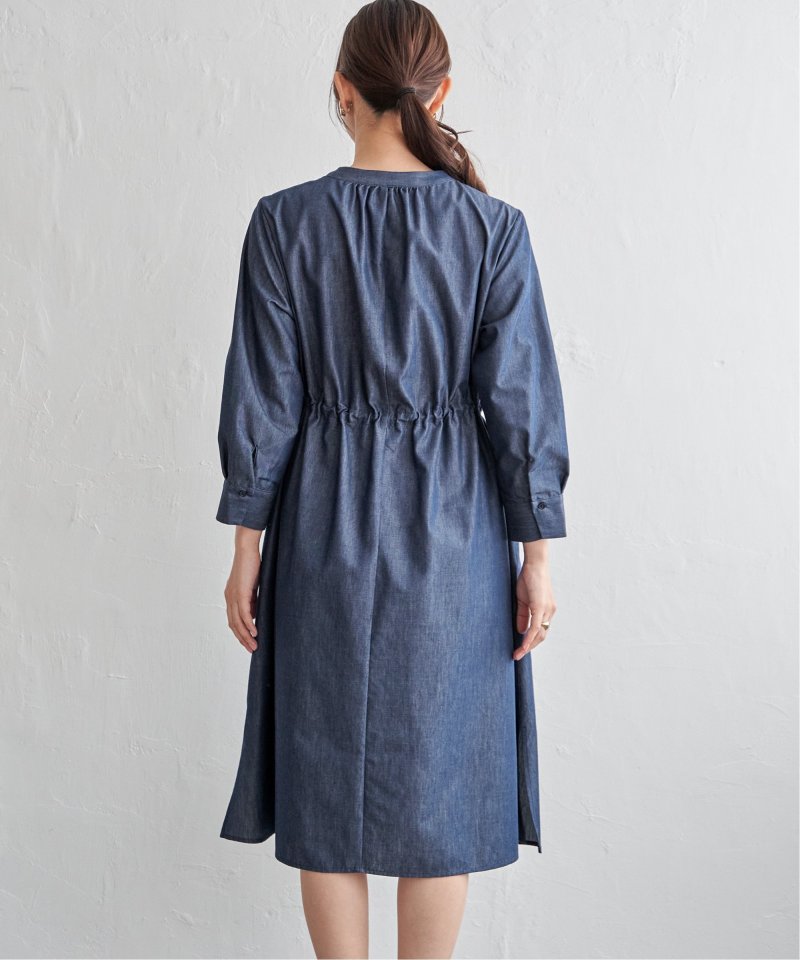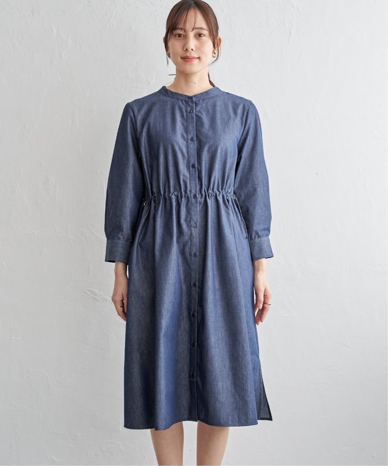 快適な素材感ときれいなフォルムを両立した一枚 【先行予約】バンドカラーウエストドロストワンピース