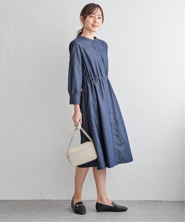 バンドカラーシャツワンピース。