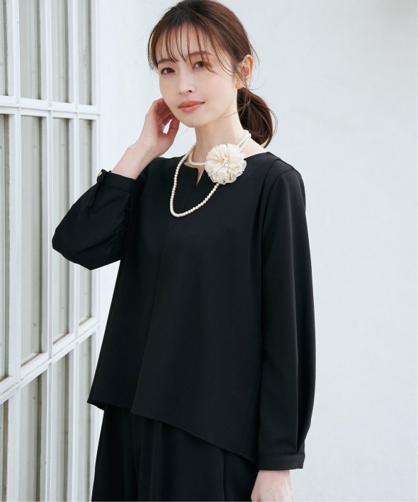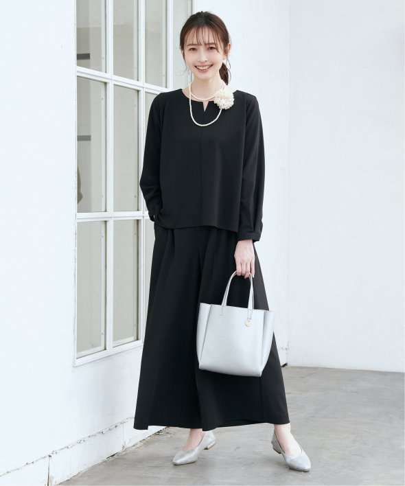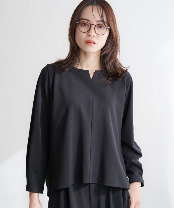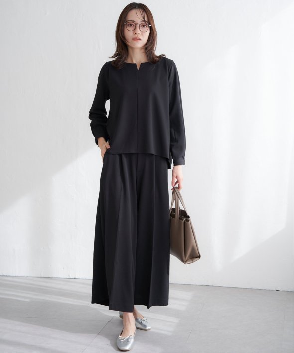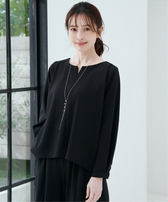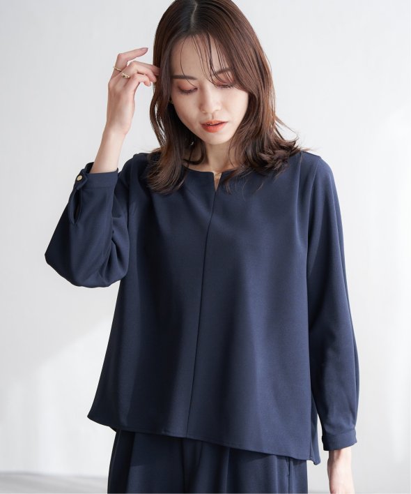 首回りはキーネックにすることでフェミニンな印象へ導きます。