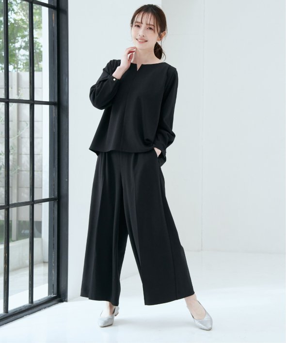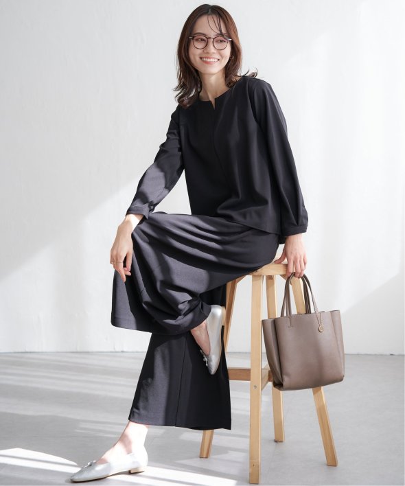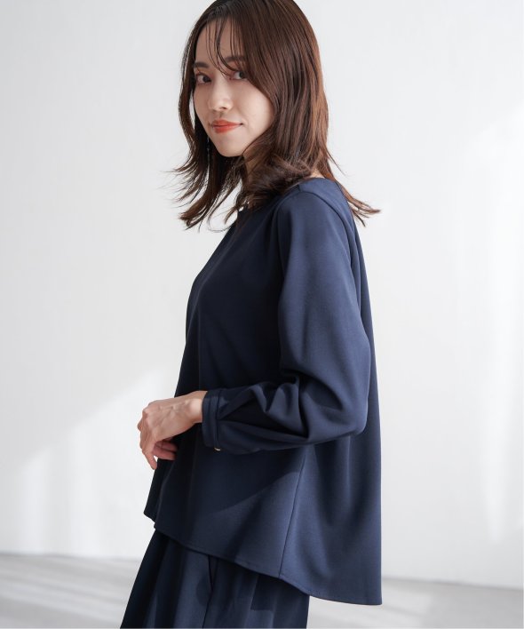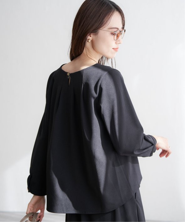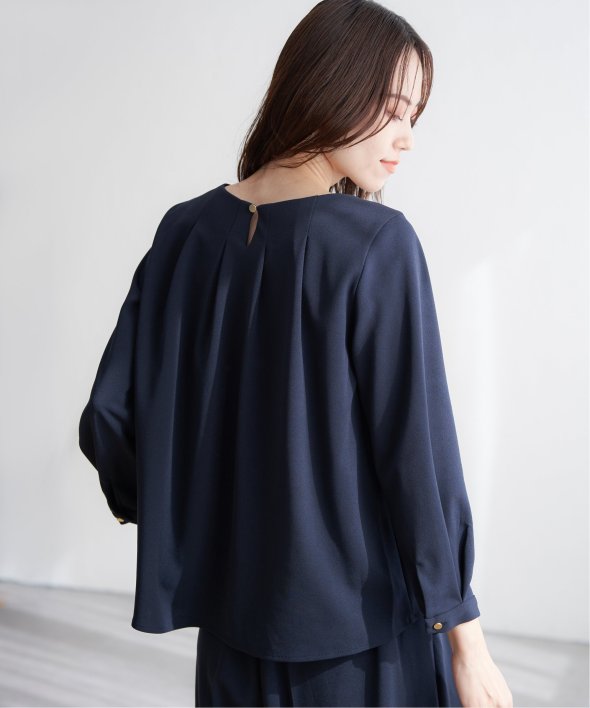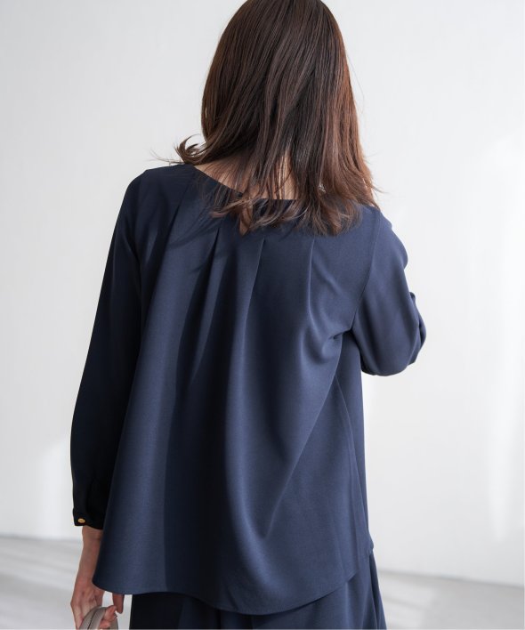 トップスには後ろ身頃に背中からタックをふんだんに入れて、後ろからも美しい、バックシャントップスです。