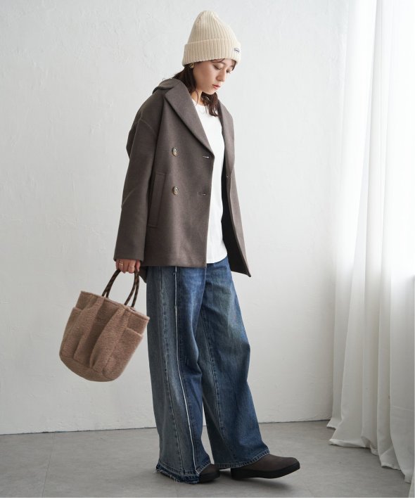 ストレッチの効いたウールライクなメルトン素材は、軽さとあたたかさを兼ね備え、冬の羽織りにぴったり。