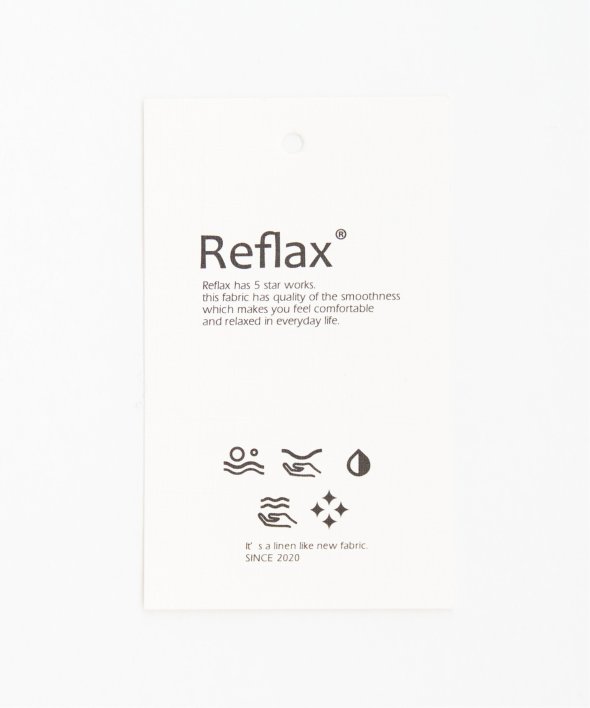 ざっくりした表面感ながら、さらっとしたタッチのハリ感のある「Reflax」と呼ばれる麻調合繊素材を使用。
