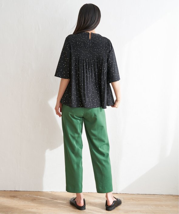 ウエストワンタックのテーパードパンツ。