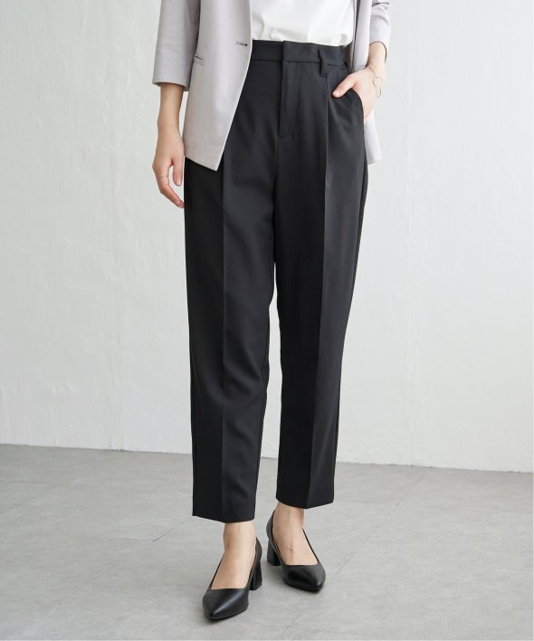 センタープレスの入ったタックテーパードパンツ。