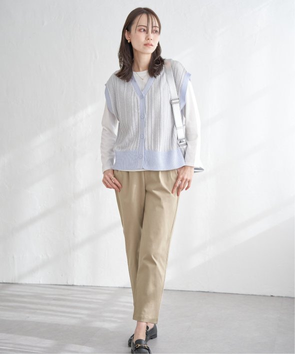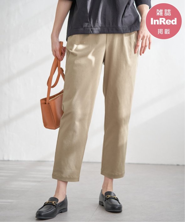 【雑誌InRed(宝島社)11月号掲載】縦×横自在に伸縮する、GOKU楽カット素材を使用したテーパードパンツ。タック入りでキチンとした印象を与えつつ、後ろゴム仕様でウエストまわりはラクにフィット。長時間の着用でも快適に過ごせる、まさに理想的な一本です。【素材】伸縮性があり着心地の良い、GOKU楽カット素材を使用。ツイル見えする表面感でカジュアルな印象です。【デザイン】タック入りでキチンと見えしながら、後ろゴムでウエストまわりが楽なテーパードパンツ。【ikkaポイント】まるで布帛!のパンツに見えますが、カット素材でタテヨコに伸縮性があり、動きやすくて快適な素材を使用しています。後ろゴムと安心股上でデイリーに使いやすい、すっきりシルエットを目指しました。【おすすめコーディネート】ジャケット×シャツを合わせて、オフィスでも品よく快適に。シンプルなカットソー×スニーカーを合わせれば、大人のカジュアルスタイルが楽しめます。【親子コーデ】キッズサイズも展開しているため、親子おそろいでコーディネート可能です。・GOKU楽パンツ テーパード(120~160cm) 品番 13250519親子お揃い、親子おそろい、親子リンク[洗濯方法]洗濯の際はネットを使用してください