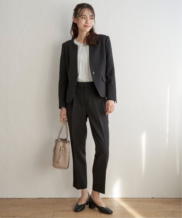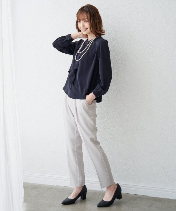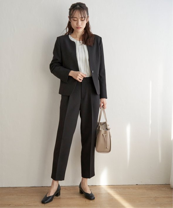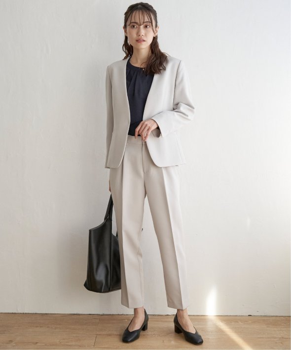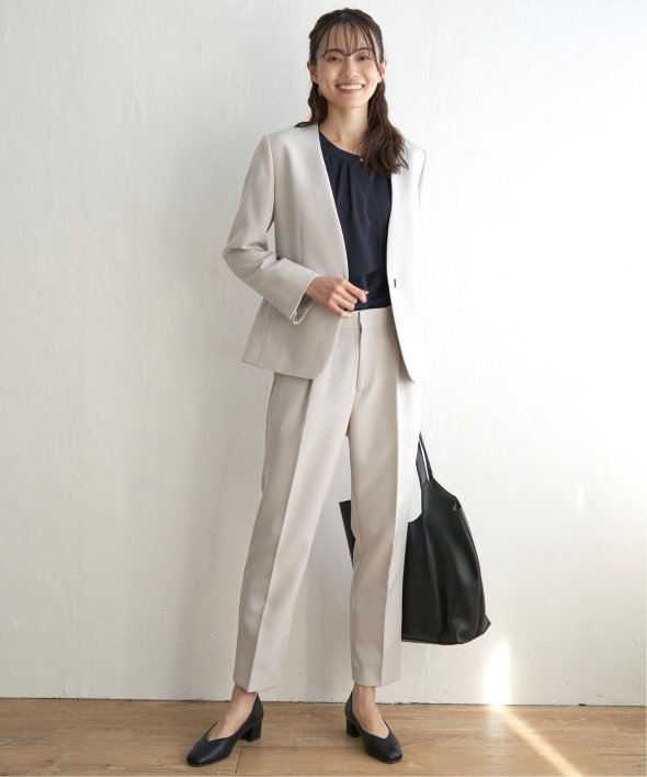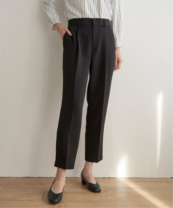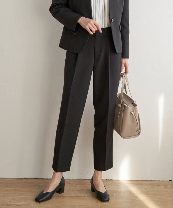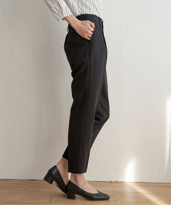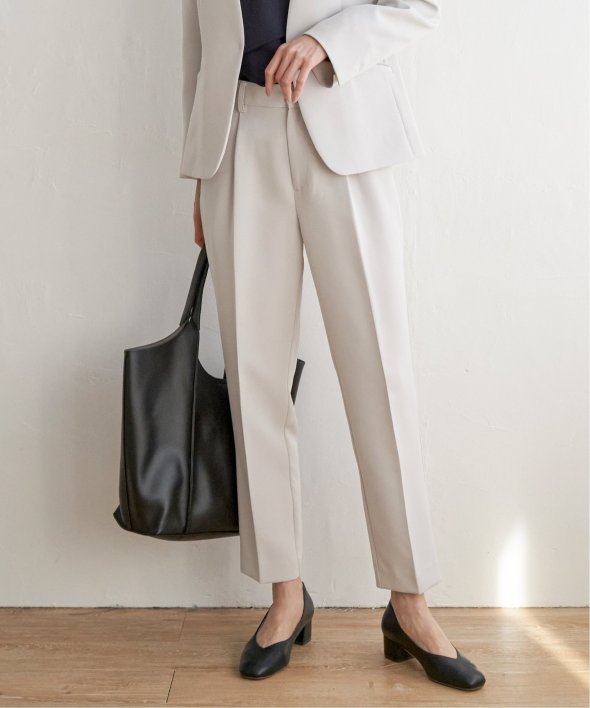 フォーマルシーンからビジネスシーンまでこなすきれい目テーパードパンツ。