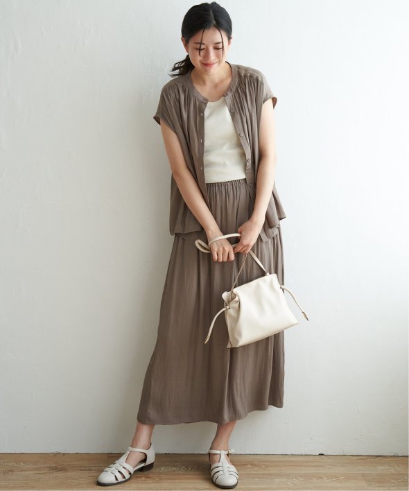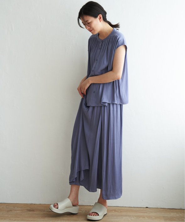 同素材、別売りのスカーチョも展開しているので、キレイめなセットアップとしておすすめです。